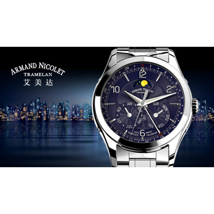 瑞士艾美达(Armand Nicolet)-当代经典系列 M02 9742B-BU-M9740 全日历月相 机械男表(已绝版) ¥51700