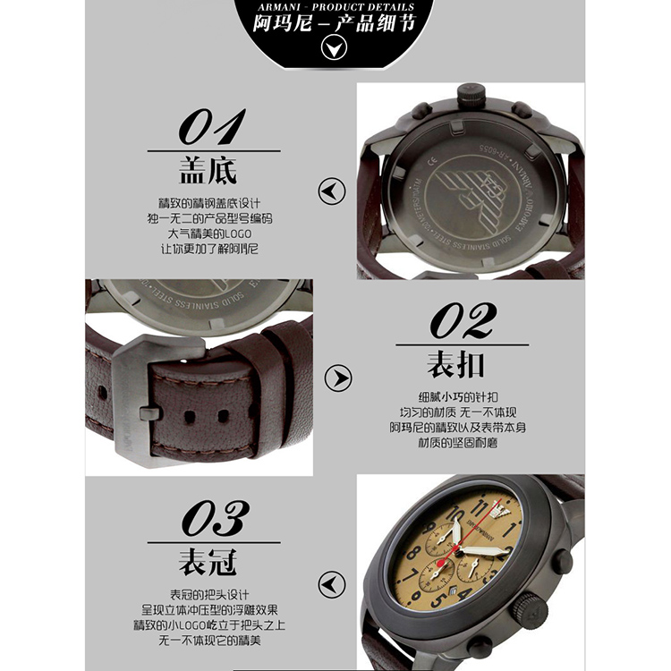 阿玛尼Armani-时尚系列 AR6055 石英男表 ¥3570