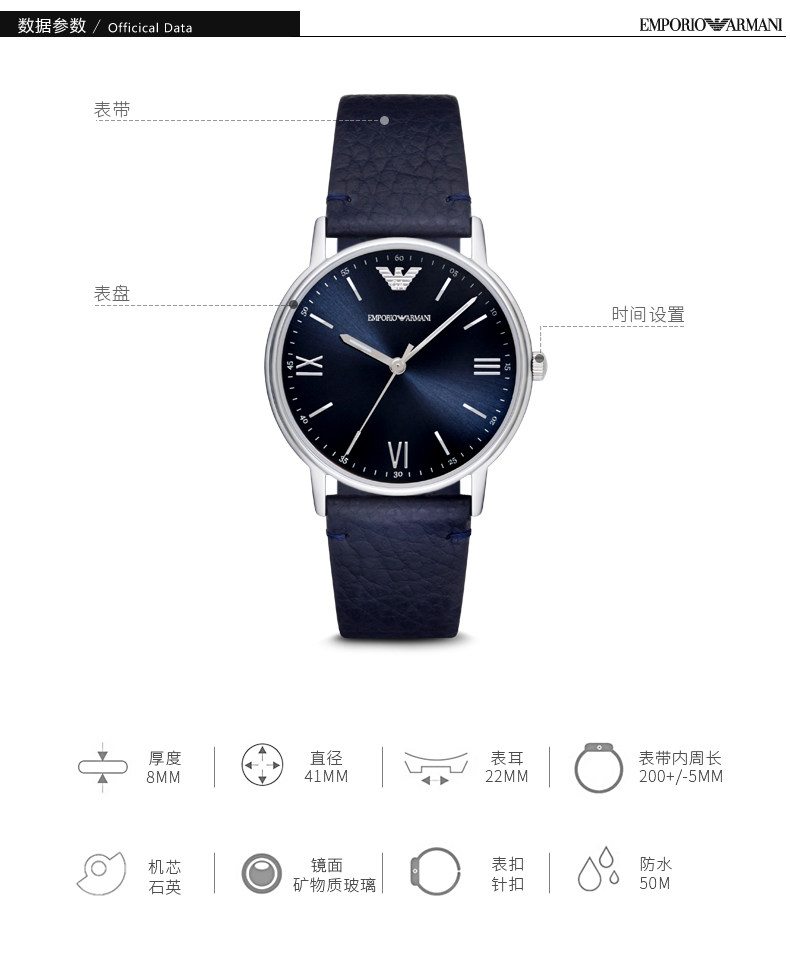 阿玛尼ARMANI-KAPPA系列 AR11012 石英男表 ¥1270