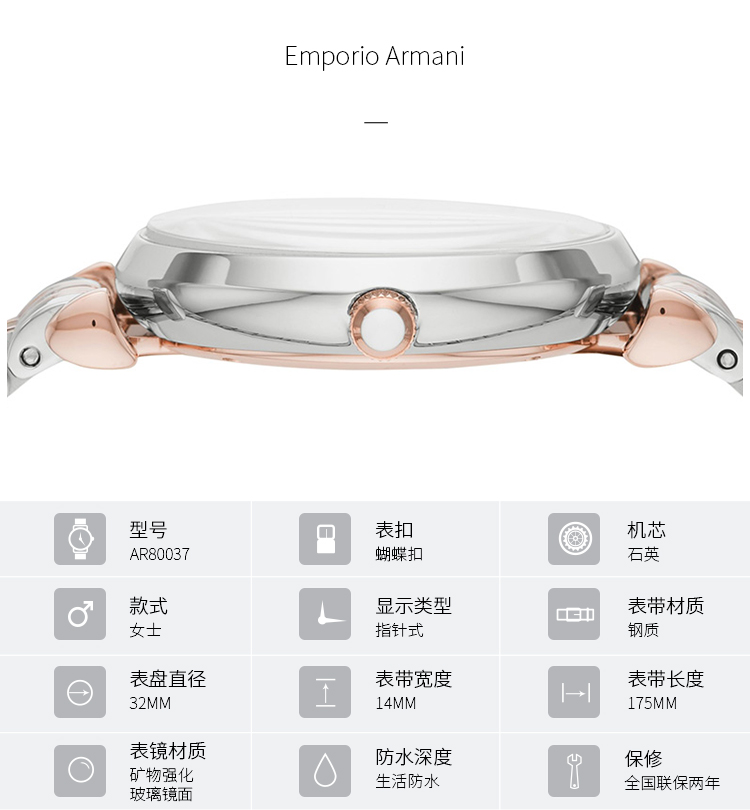 阿玛尼ARMANI-时尚女表系列 AR80037 石英女表 手链套装 ¥3990