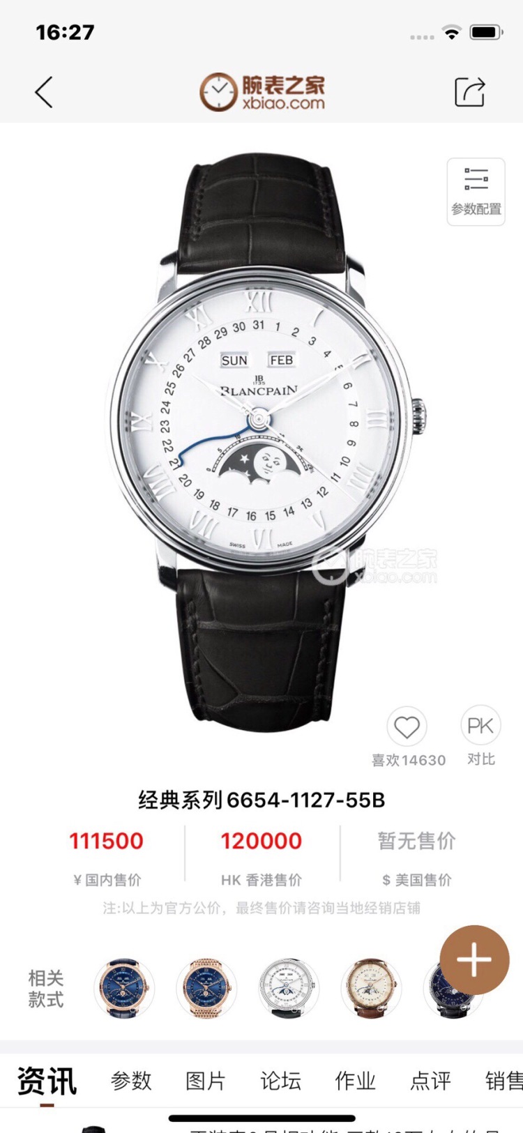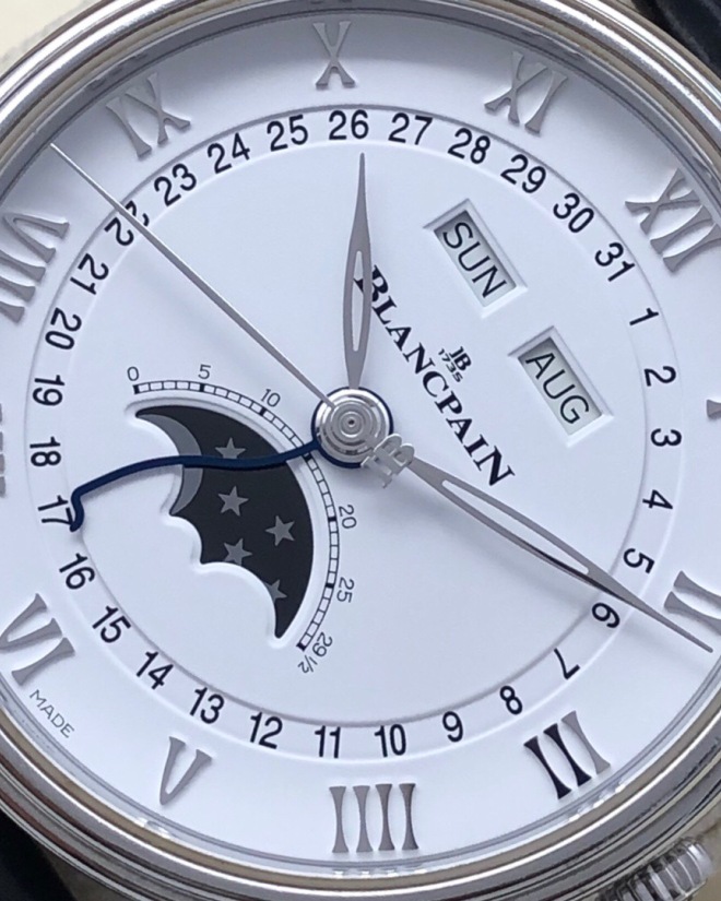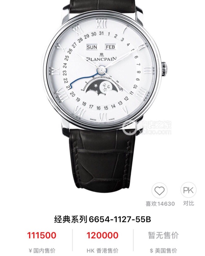 公价111500宝珀经典系列 型号6654-1127-55B 自动机械 精钢材质 40mm表径 日期 星期 月份 月相显示功能 19年全套