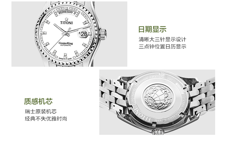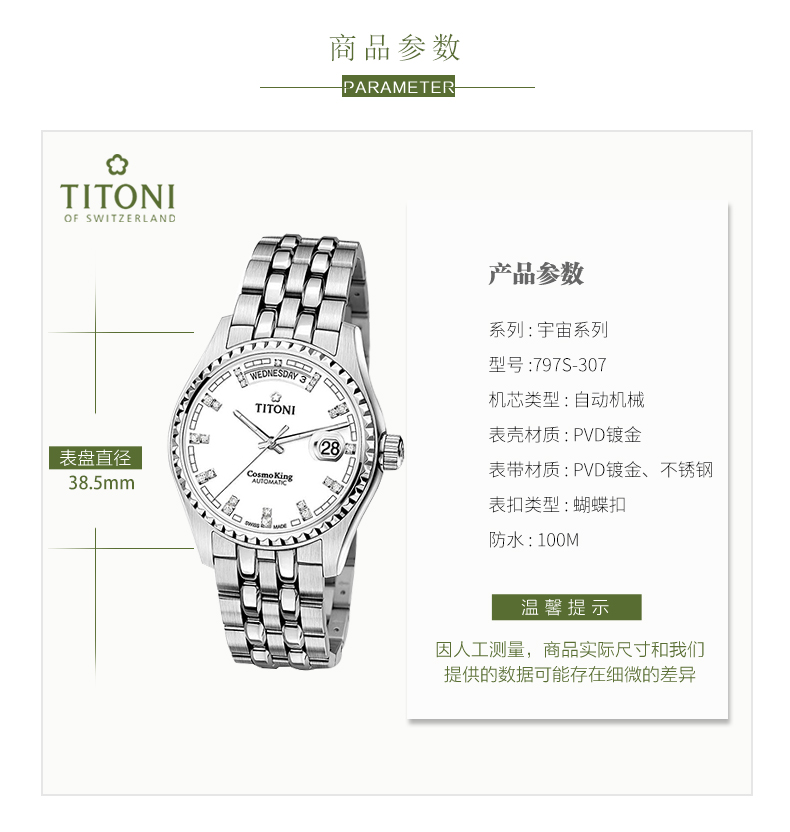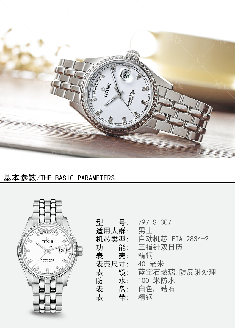 梅花TITONI-Cosmo系列 797 S-307 自动机芯ETA2834-2 男表 ¥10300