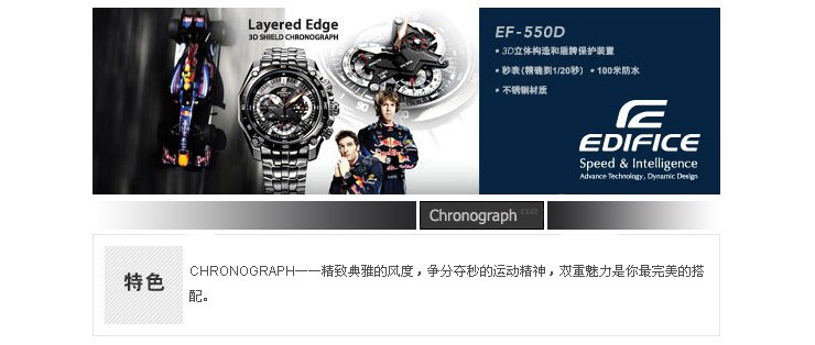 卡西欧CASIO-EDIFICE系列 EFX-500BB-1AV 男士石英表 ¥3890