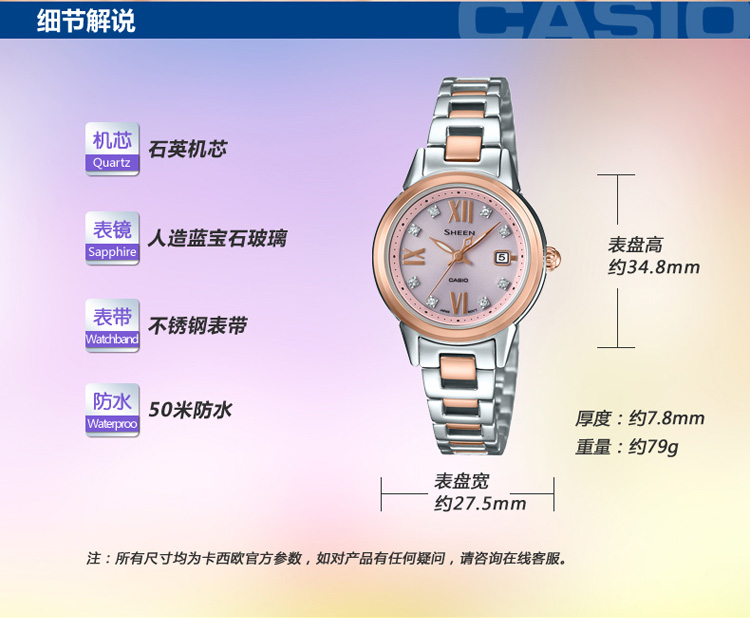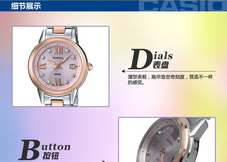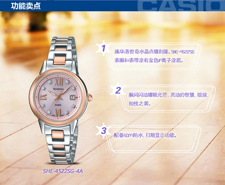 卡西欧CASIO-SHEEN系列 SHE-4522SG-4AUPR 女士太阳能手表 ¥1492