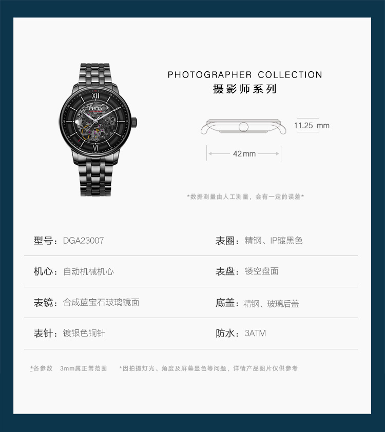 飞亚达Fiyta-摄影师系列 DGA23007.BBB 自动机械男表 ¥1999