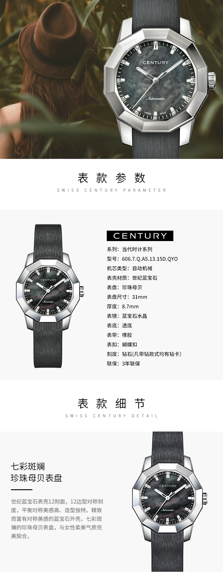 瑞士珠宝腕表:Century世纪表-PRIME TIME系列-欢聚时光 606.7.Q.A5.13.15D.QYO 机械女表 ¥51500