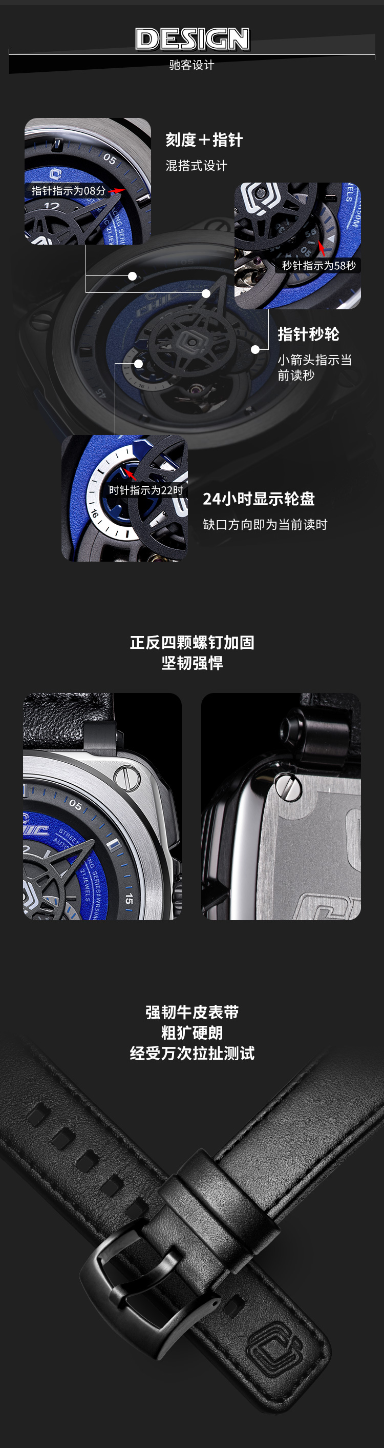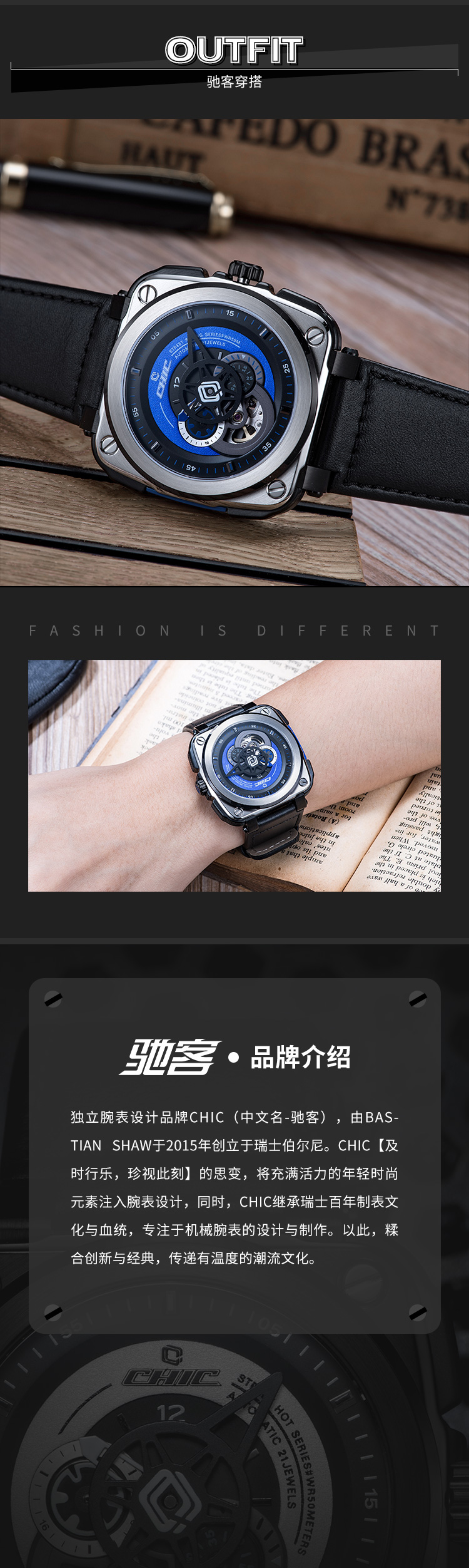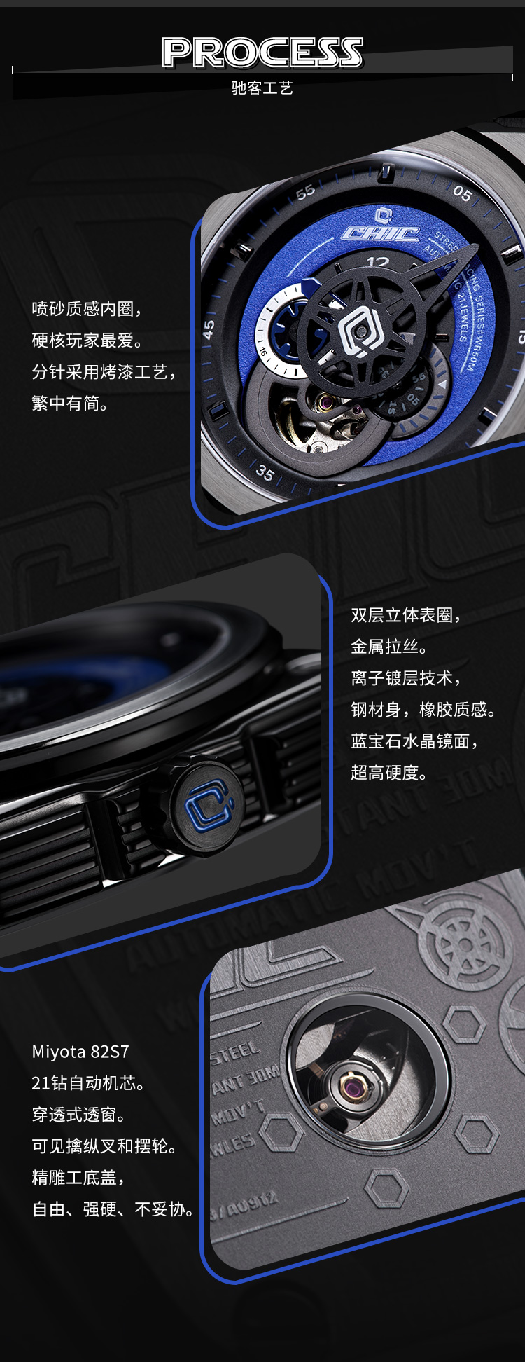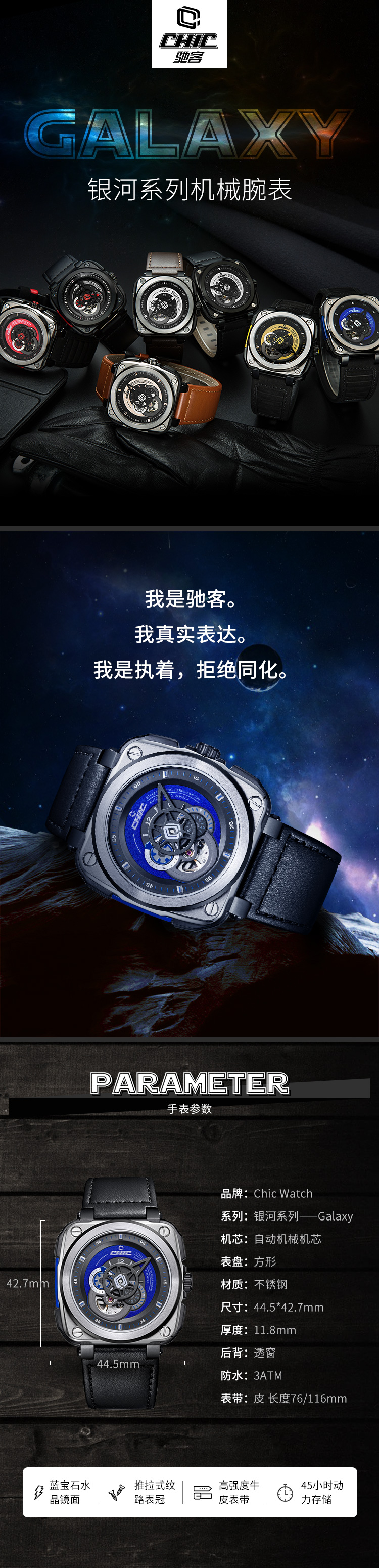 时尚先锋:驰客CHIC WATCH-Galaxy-银河系列 蓝调蓝 CC-G-SRB-001 机械表 ¥1988