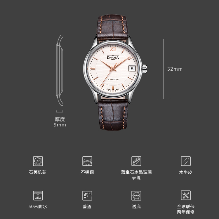 瑞士国民品牌 瑞士迪沃斯 DAVOSA-Heritage传统系列 Classic 经典机械 金边玑镂 16618832 自动机械商务休闲女表 ¥6034