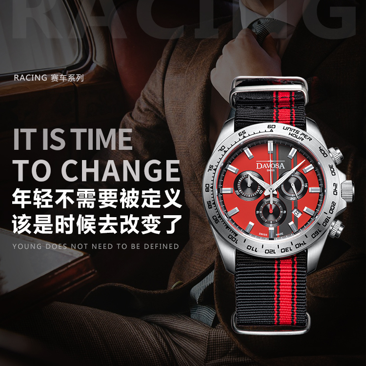 瑞士国民品牌 瑞士迪沃斯 DAVOSA-Performance高性能系列 Speedline TX 极速计时 红线版 16248865 男士商务休闲石英表 ¥2620