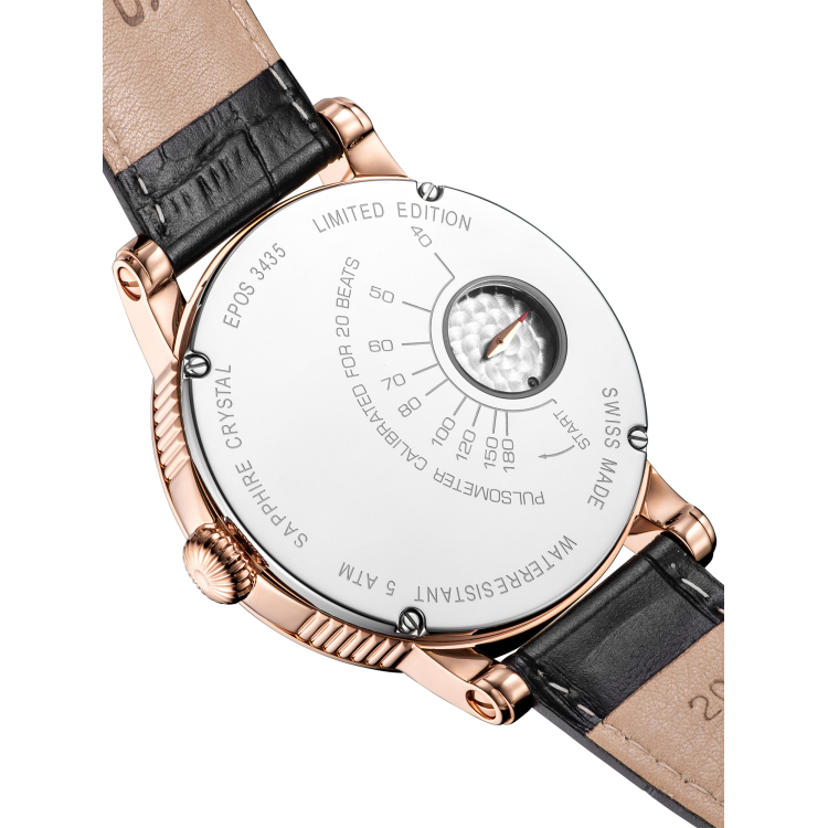 【实拍控】今日推荐:瑞士艺术制表大师爱宝时(EPOS)-Oeuvred‘art艺术系列3435.313.24.15.25机械男表首先,要说一下,它叫脉搏表(又名医生表),因为在这款腕表的背面,有一个小表盘,可以测量你的脉搏频率,操作非常简单,当指针走到start处时,你按住手腕脉搏,当脉全文