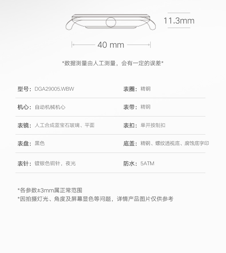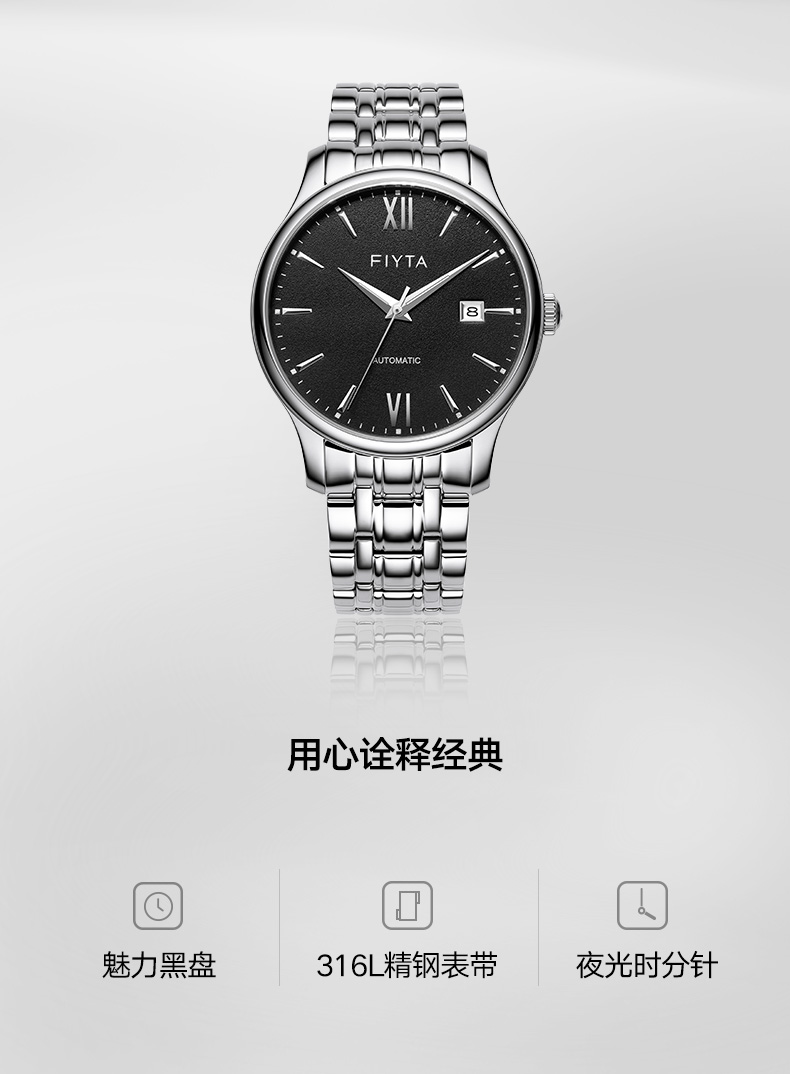 飞亚达Fiyta-经典系列 DGA29005.WBW 自动机械男表 ¥1199