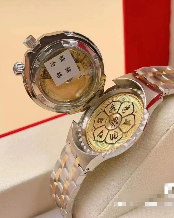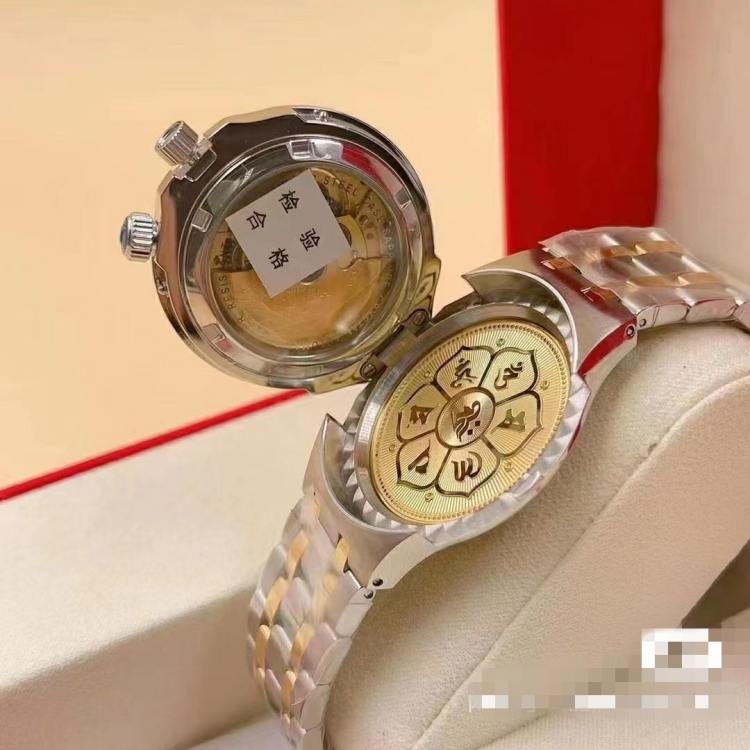 飞亚达祈福系列18K金表全套包装 手提袋 保修卡 K金鉴定证书 表盘直径38.5 经典翻盖设计 图案18K包金材质 搭载瑞士ETA2824自动机械机芯 全新专柜正品 假一赔三
