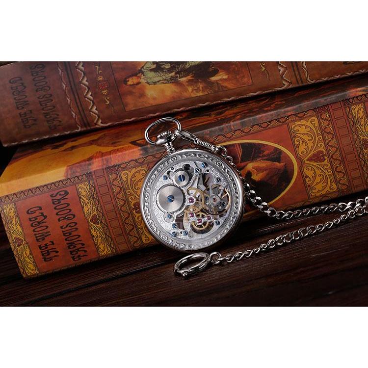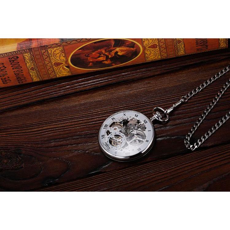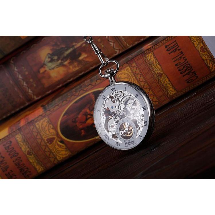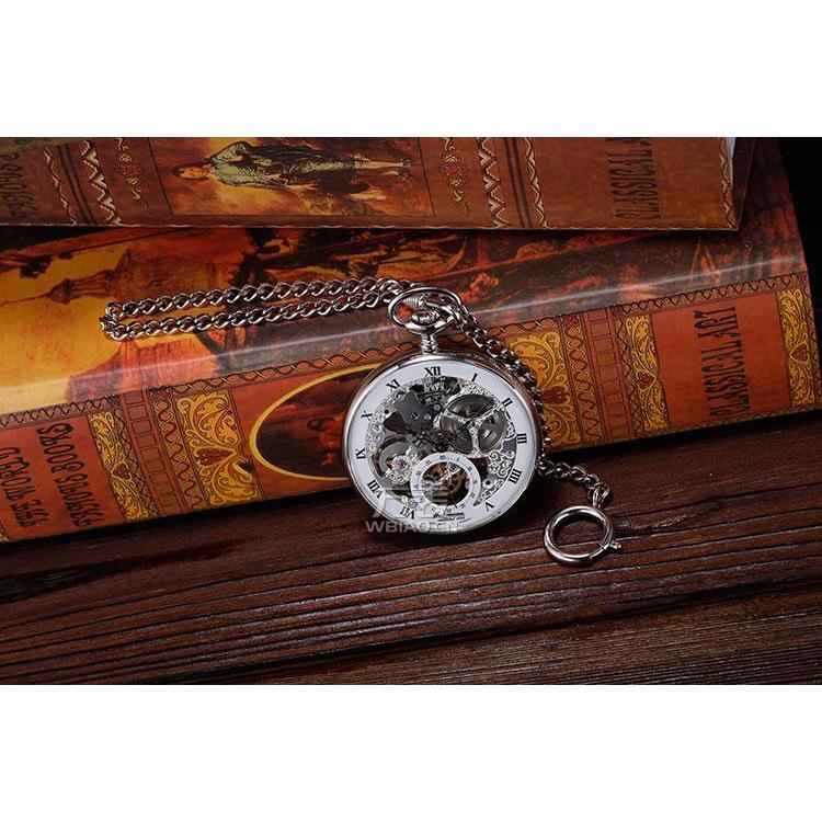 银白色无表盖怀表 直观表盘构造 复古罗马数字刻度搭配教堂式指针 带圆棒型小三针设计 更简约怀旧