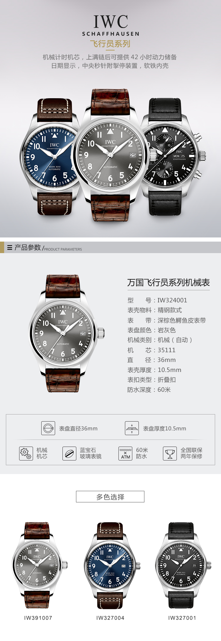 万国IWC-飞行员系列 IW324001 男士自动机械表 ¥35800