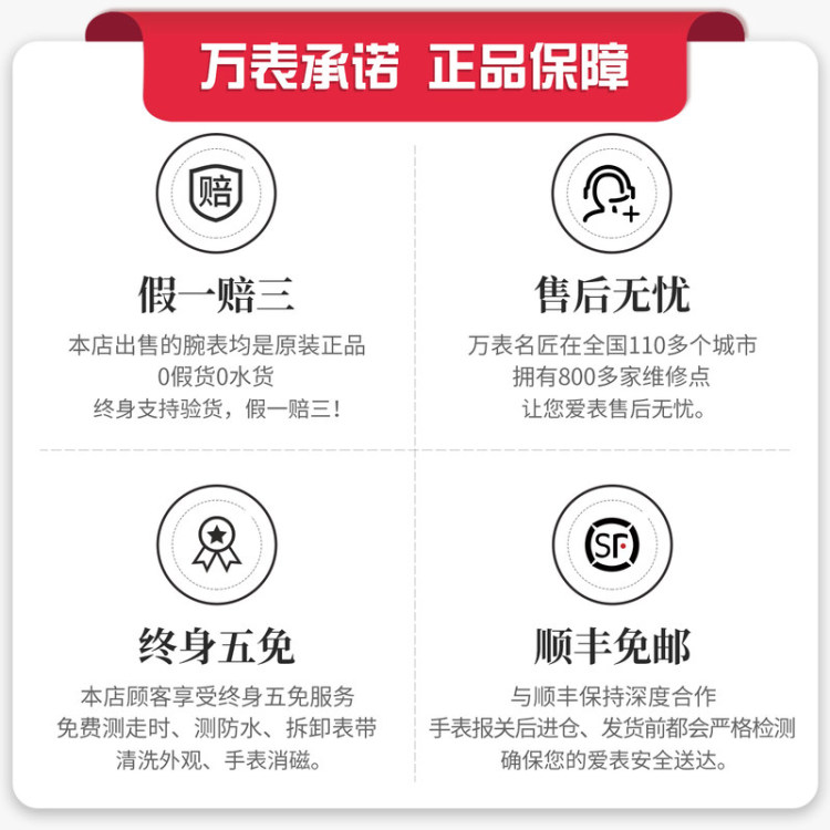 温馨提醒:任何手表都不建议佩戴淋浴(禁止高温),避免加速防水胶圈老化。为确保手表正常防水,建议1-2年检验一次防水功能,更多手表使用注意事项,详见手表品牌说明书。