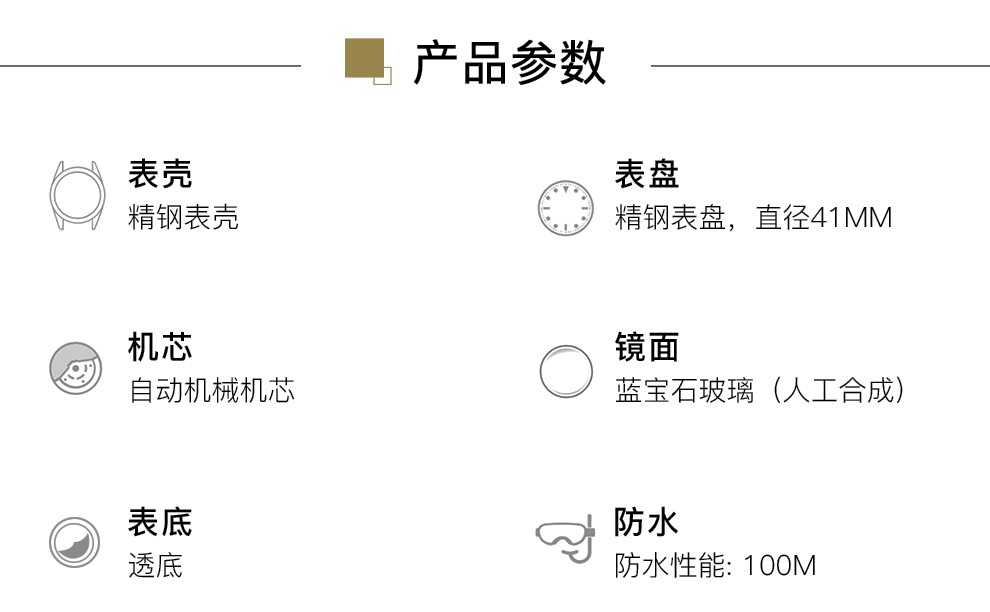 温馨提醒:任何手表都不建议佩戴淋浴(禁止高温),避免加速防水胶圈老化。为确保手表正常防水,建议1-2年检验一次防水功能,更多手表使用注意事项,详见手表品牌说明书。