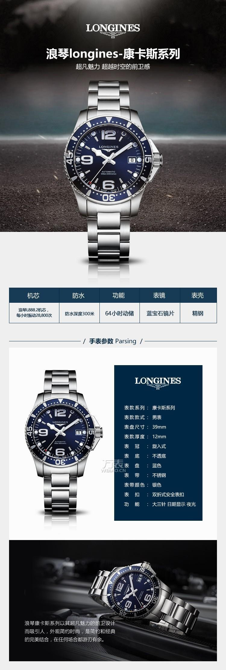 浪琴longines-康卡斯系列 L3.741.4.96.6 机械男表【绝版】 ¥11500
