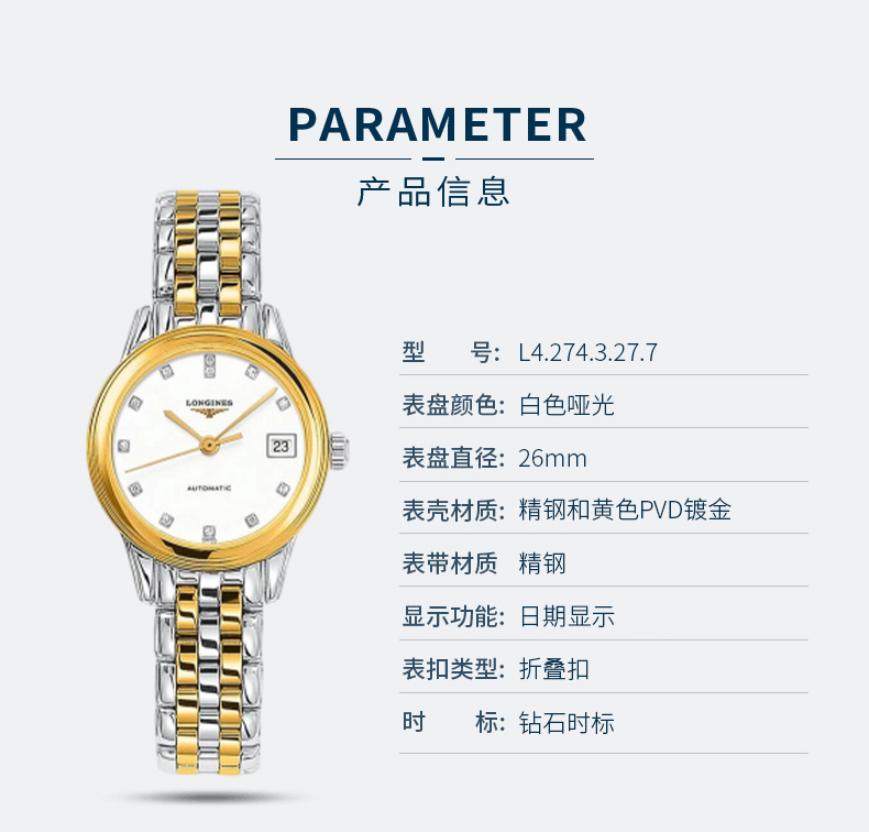 浪琴Longines-军旗系列 L4.274.3.27.7 机械女表 ¥16800