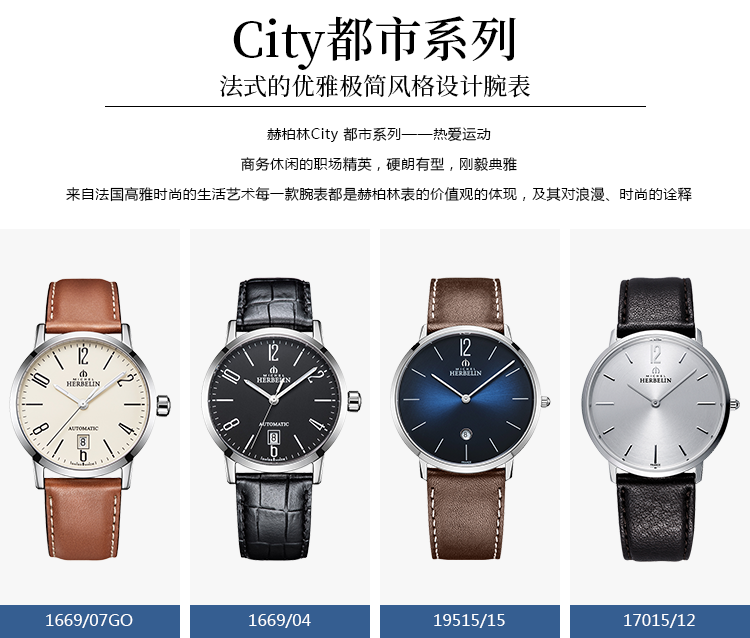 法国总统夫人之选 法国优雅时尚腕表品牌: Herbelin赫柏林-City都市系列 19515/01 男士石英表(已绝版) ¥2050