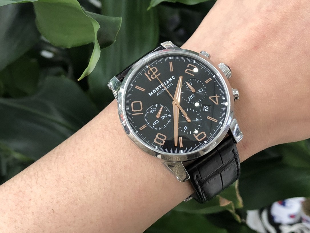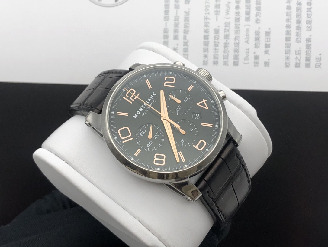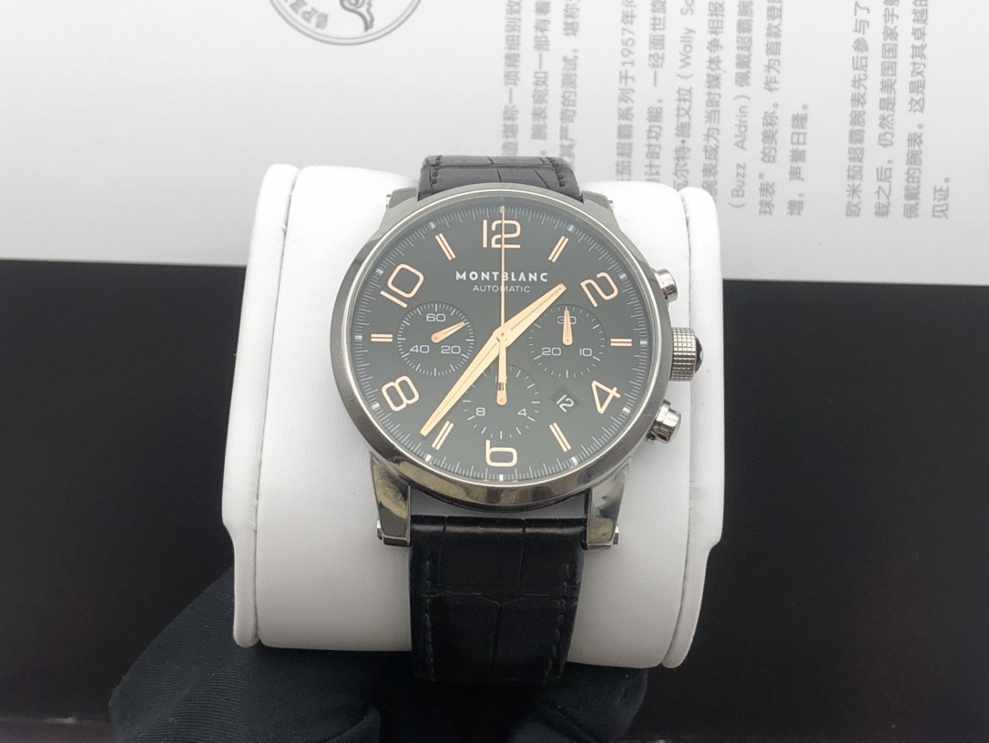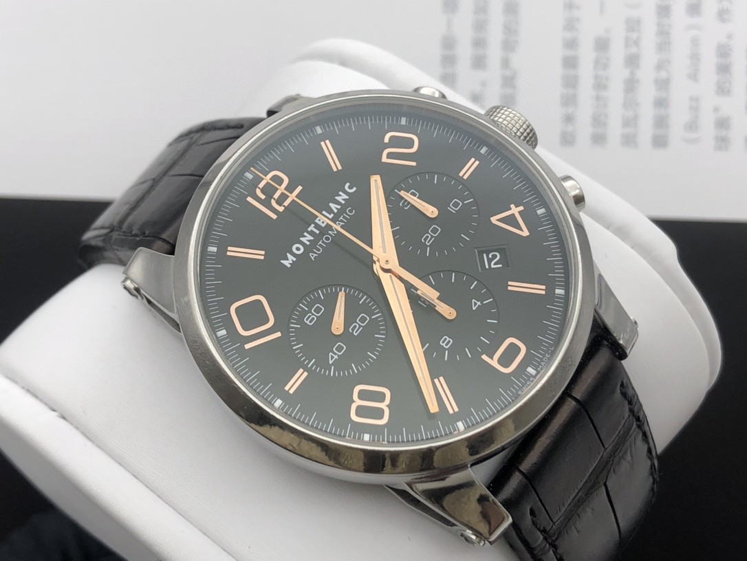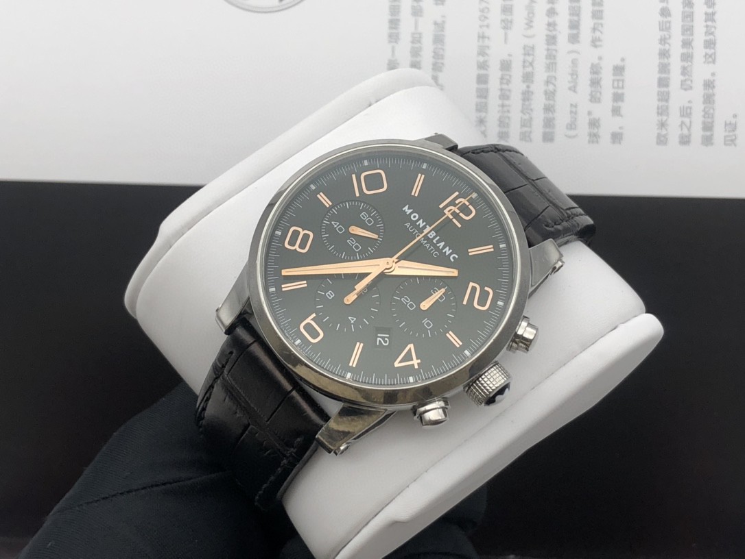 MONTBLANC/万宝龙时光行者系列U0101548男士腕表腕表,表径43MM,自动机械机芯,日期显示,计时功能,精钢表壳,皮带,优雅黑色表盘镀玫瑰金数字刻度