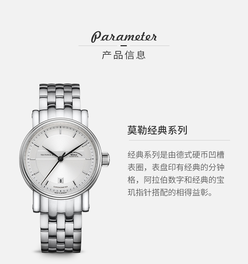 德国航海领域的专业时计 德国格拉苏蒂·莫勒 Muehle·Glashuette-经典系列-M1-30-45-MB 机械男表(天文台认证) ¥27000