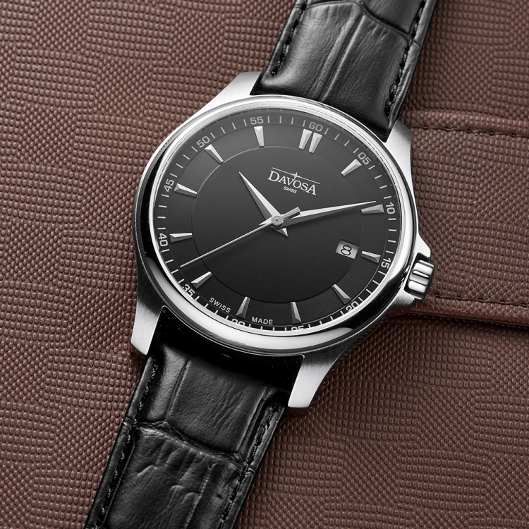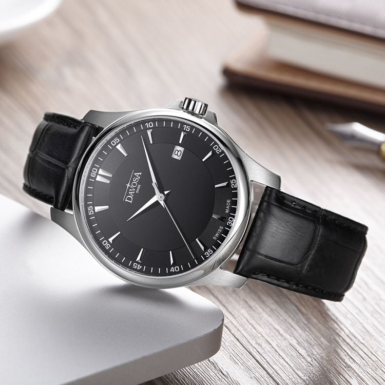 【预售】瑞士国民品牌 瑞士迪沃斯 DAVOSA-Executive行政系列16246655 黑盘男士商务休闲石英表 ¥1553