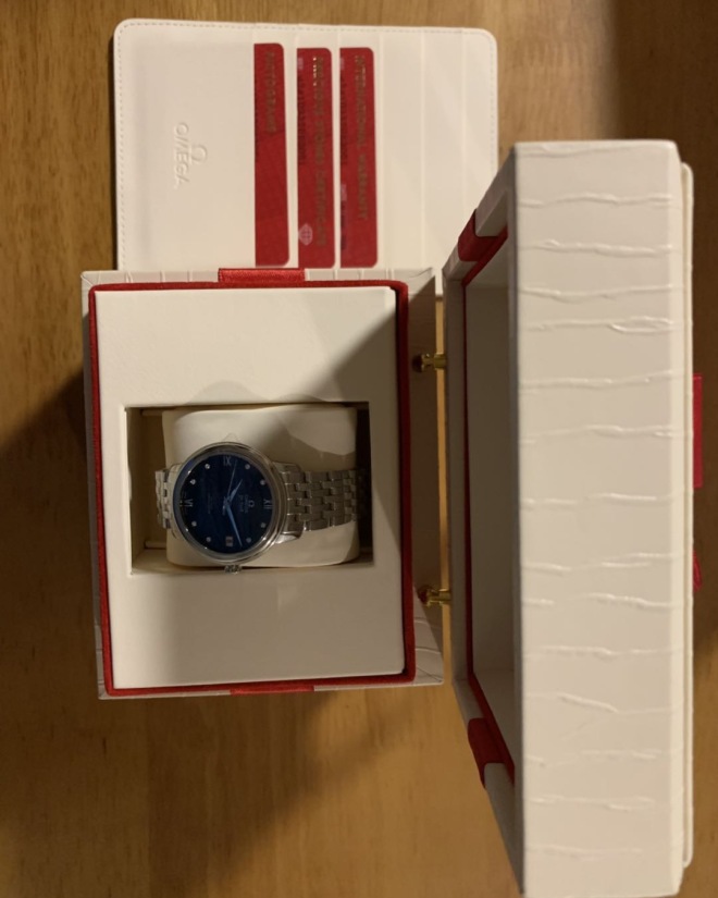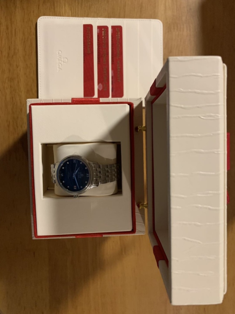 全新未使用欧米茄碟飞系列自动机械女表,2019年8月新购,保卡包装齐全