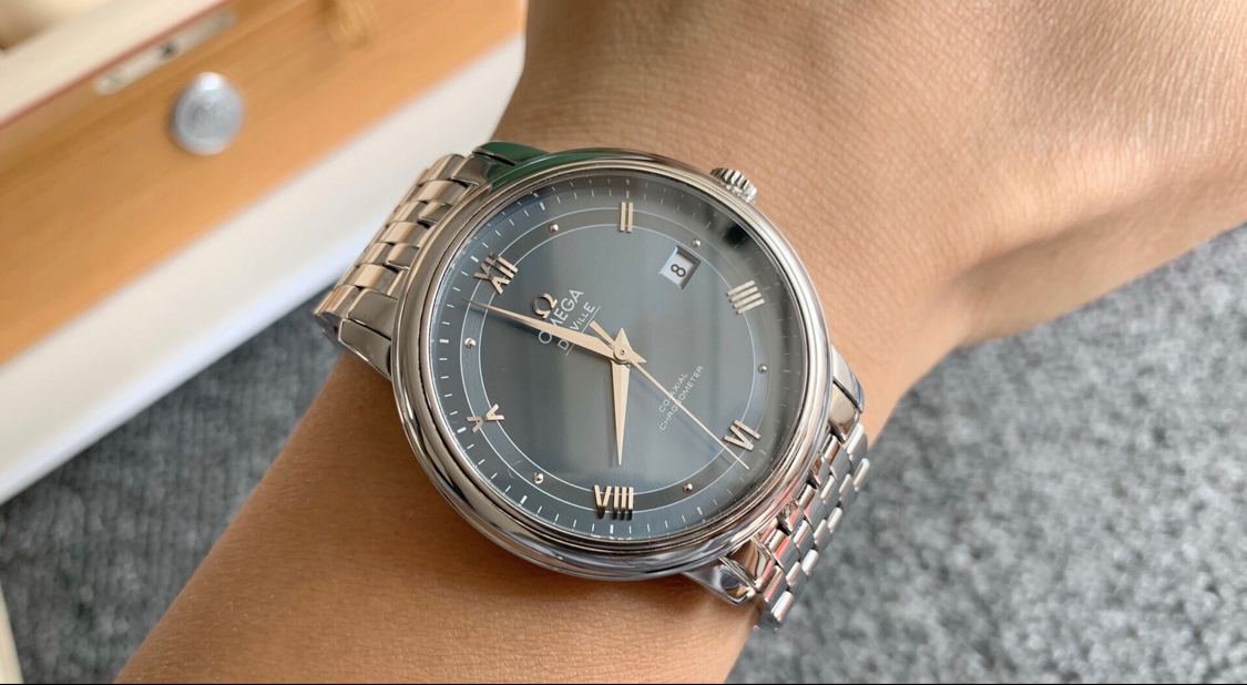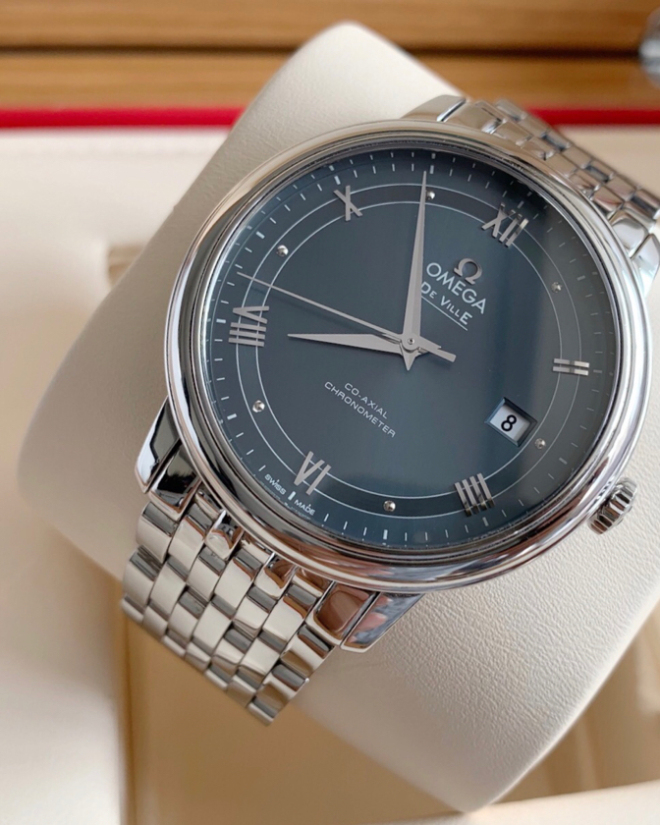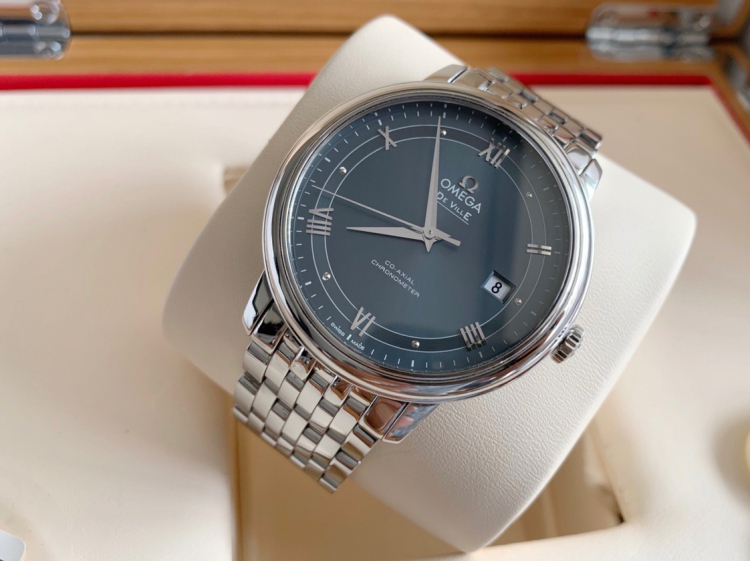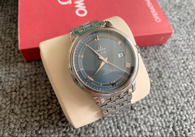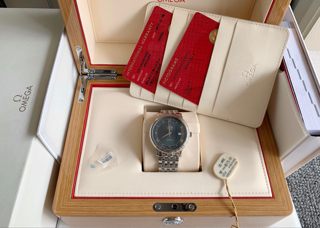 欧米茄碟飞系列男士机械腕表,表径39.5mm,最新轨道面蓝盘钢带款,超级热门款式,成色95新,19年国行全套购入,所有附件如图所示,公价28500,专柜打九折,现好价