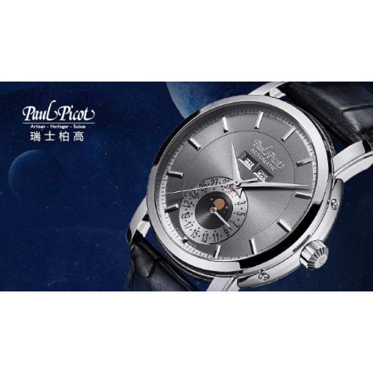 【预售】欧洲皇室御用制表品牌 瑞士柏高 Paul Picot-FIRSHIRE 梦想家系列 全日历月相表 P0459.SG.1022.8601 正装休闲 机械男表(限量400枚) ¥61200