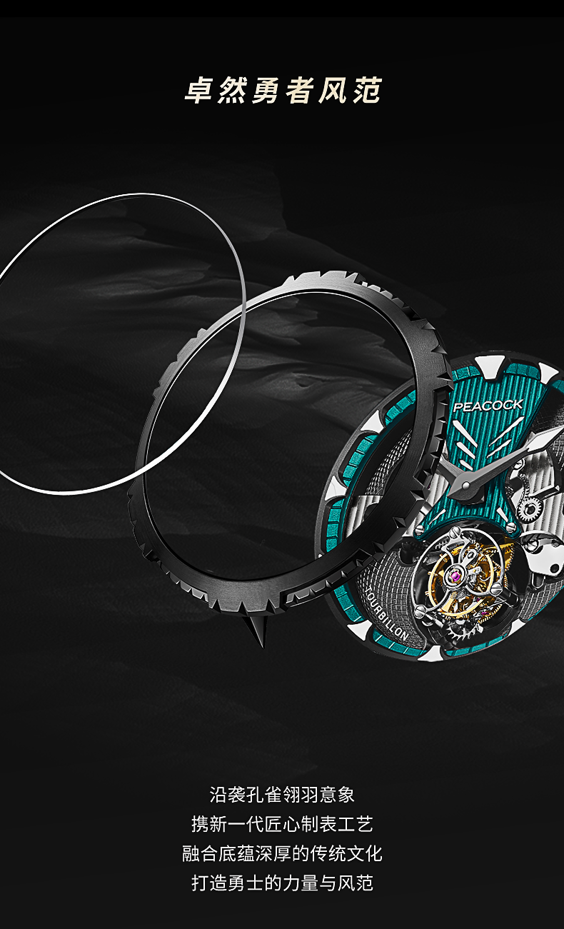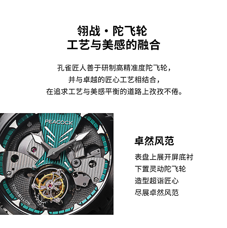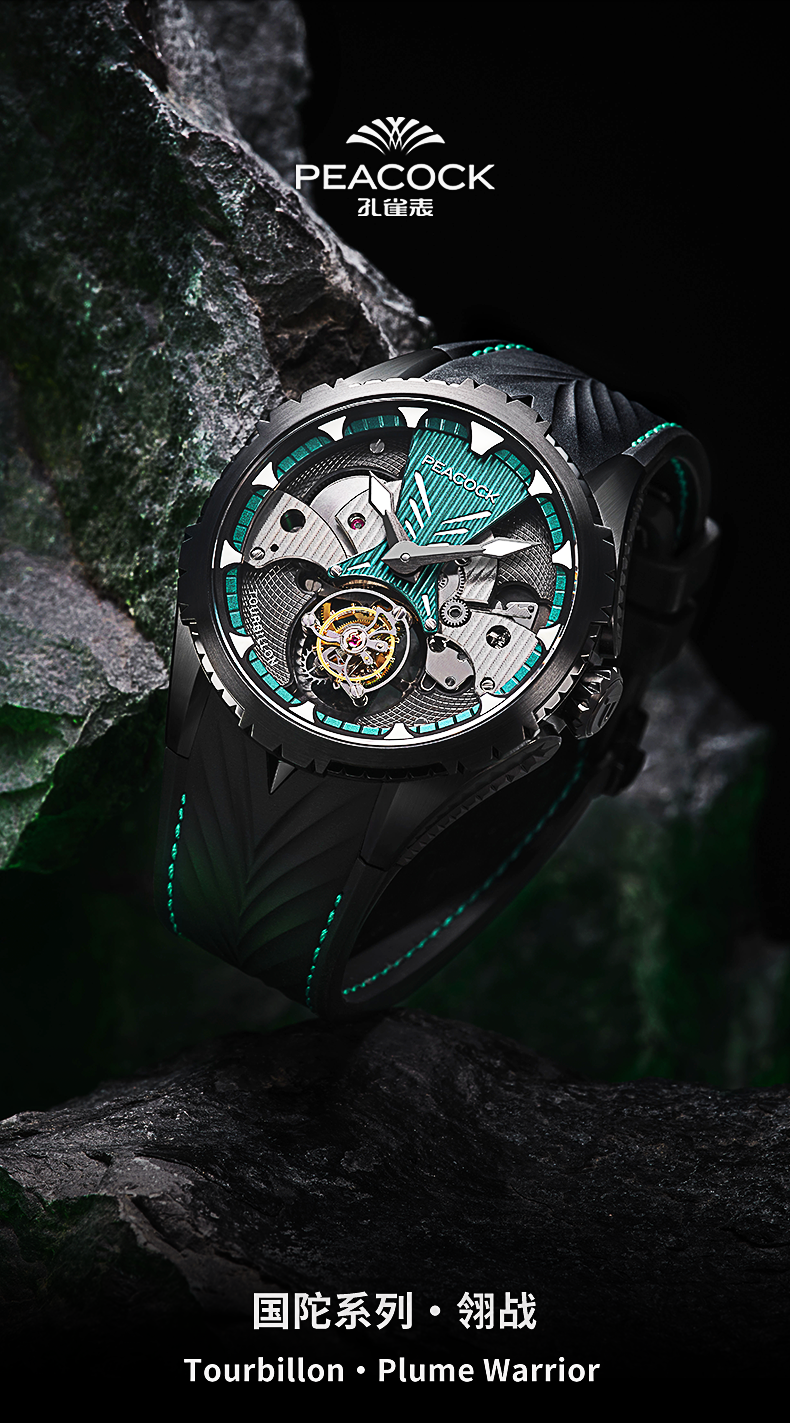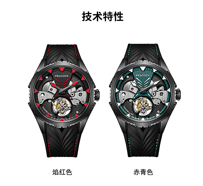 孔雀Peacock-超凡系列·翎战 PAG0102.02 赤青色 单陀飞轮男表 ¥23999