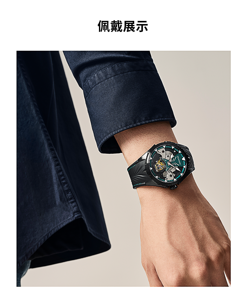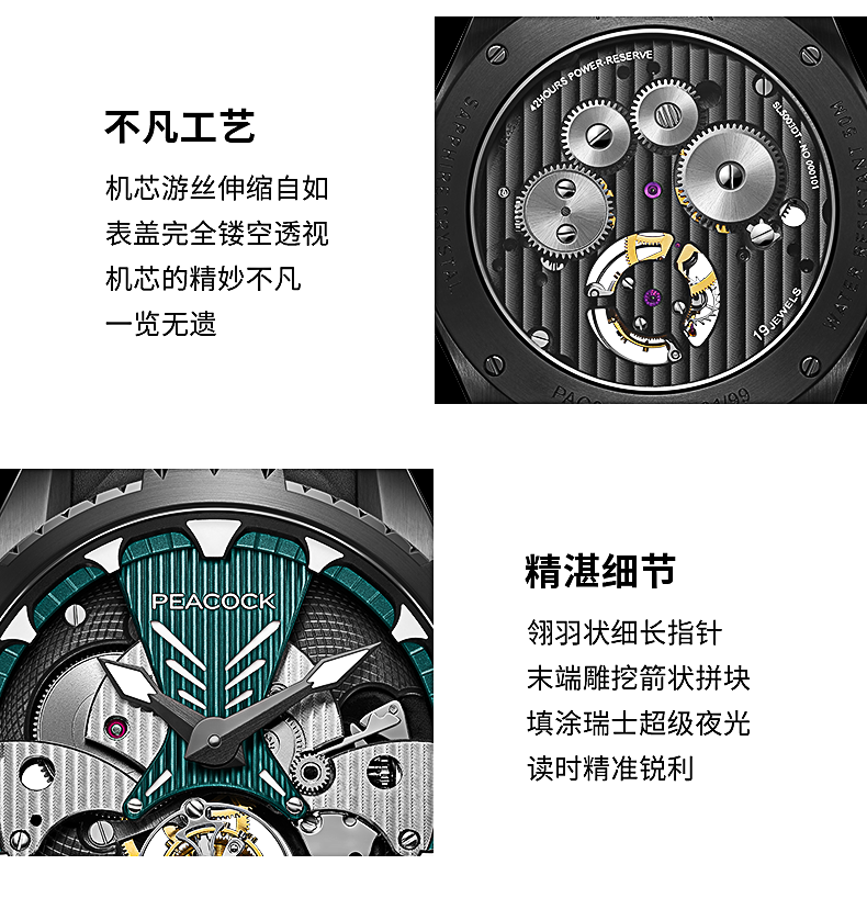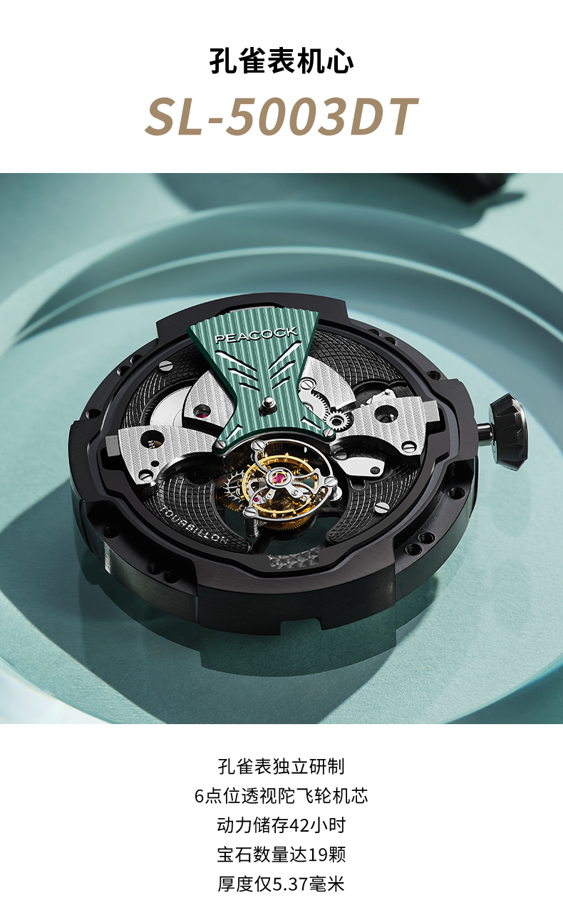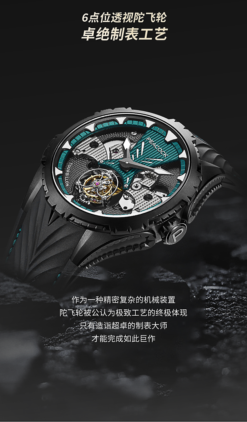 孔雀Peacock-超凡系列·翎战 PAG0102.02 赤青色 单陀飞轮男表 ¥23999