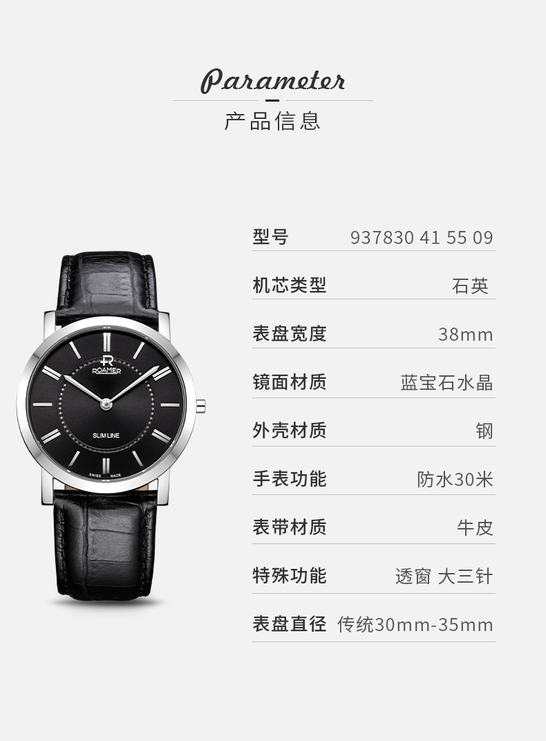 【现货秒发】瑞士罗马表 ROAMER-纤薄系列男士石英 937830 41 55 09 ¥2719