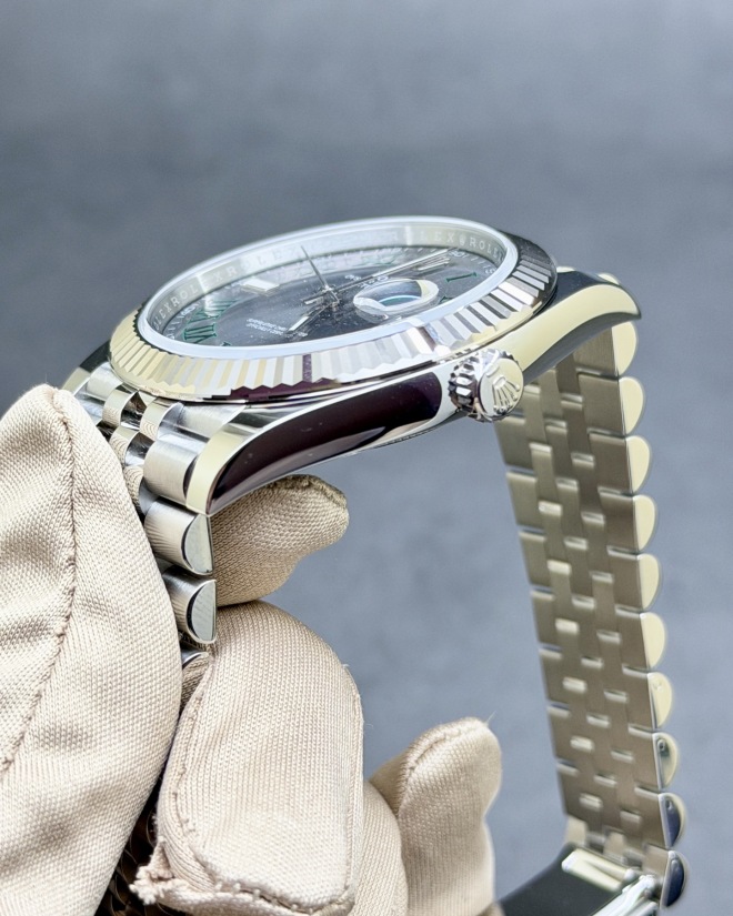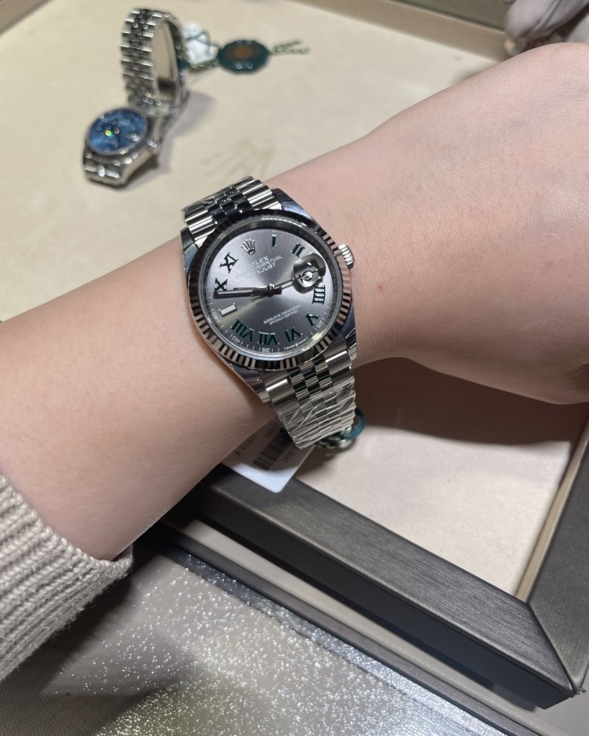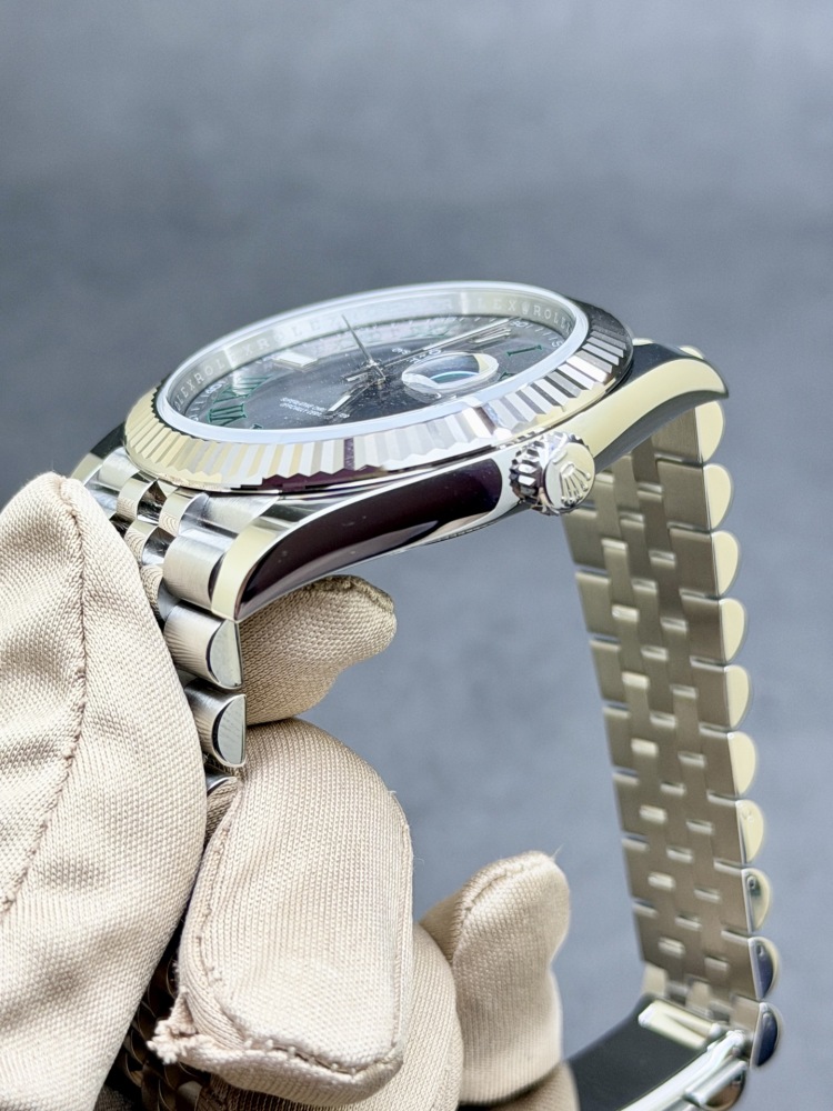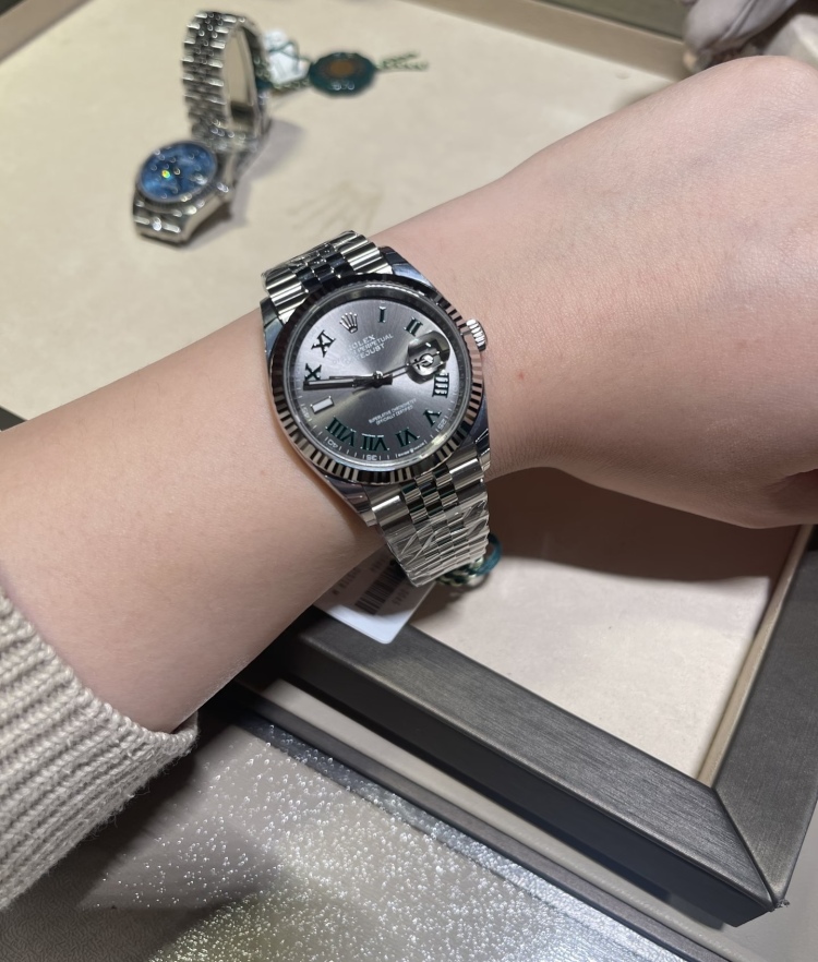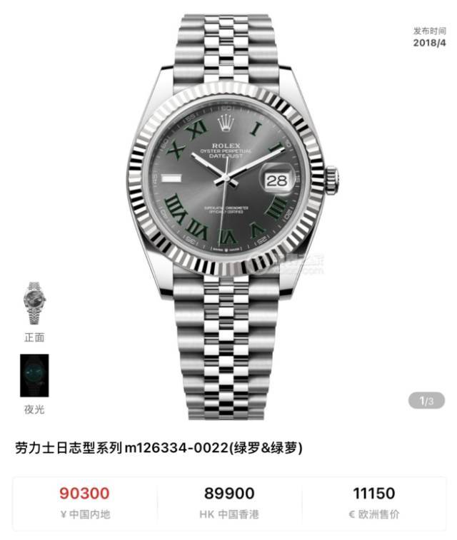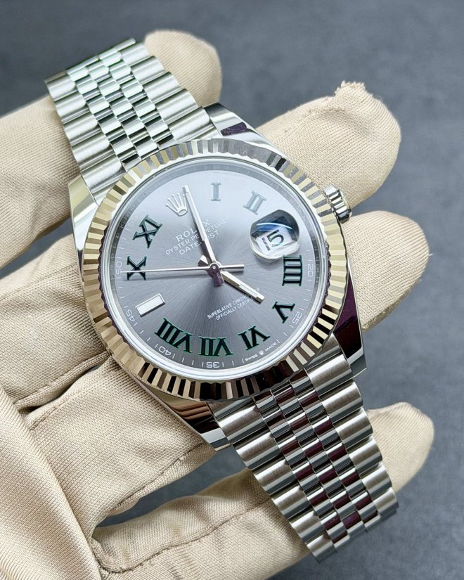 劳力士126334-0022日志型,绿萝,高级灰盘面,绿色罗马刻度,41mm表径,全套未使用品,现货有。