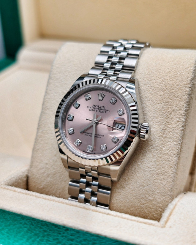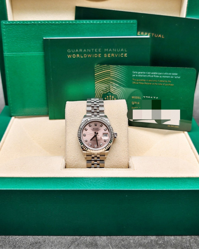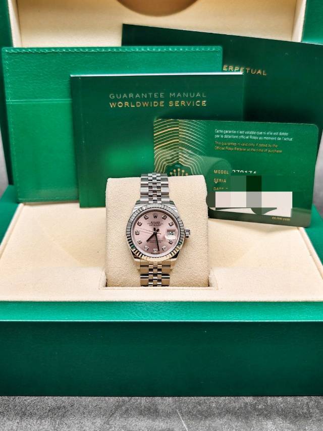 劳力士279174-0003女装日志型,粉钻,五珠链,28mm表径,全套未使用品,现货有。