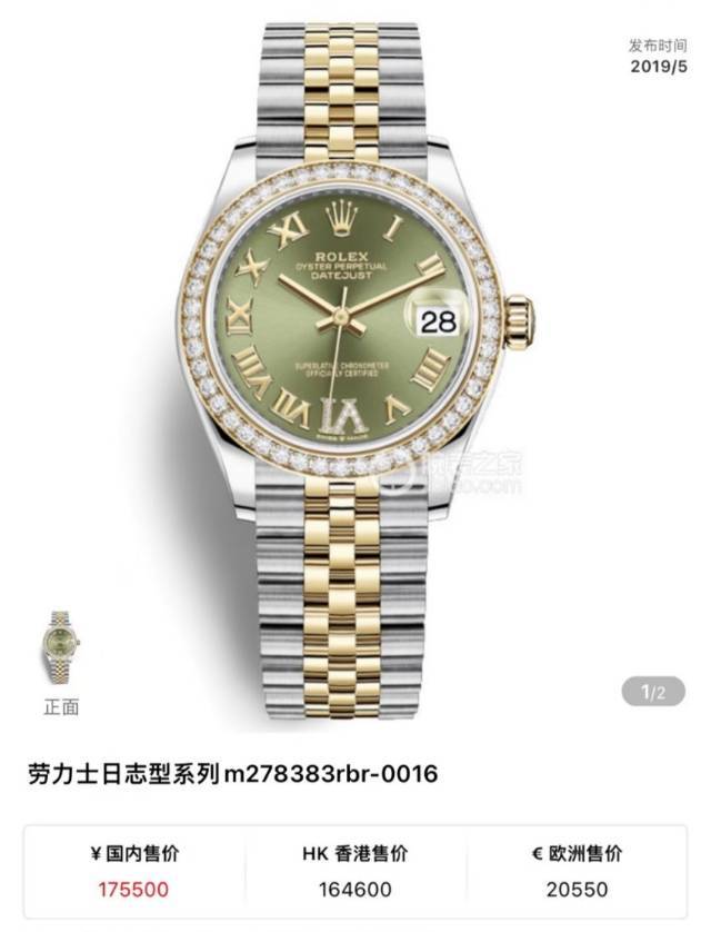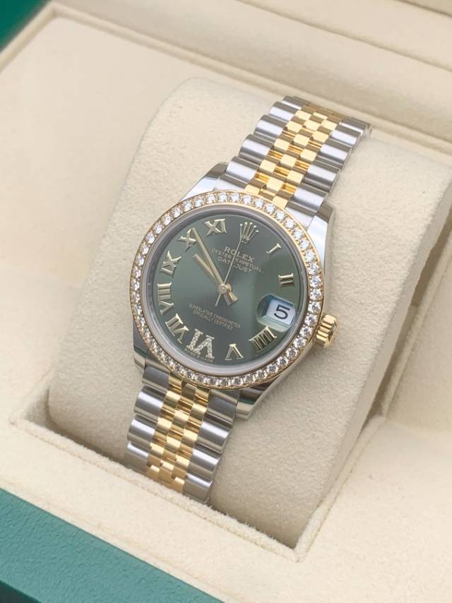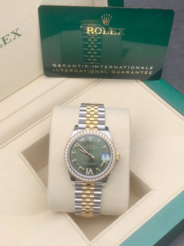 劳力士278383RBR-0016日志型,31mm表径,绿罗马圈钻盘面,全套未使用品,有货。公价上调为175500元
