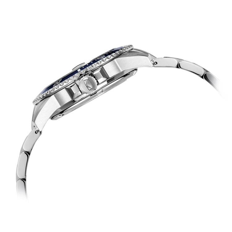 视觉质感锯齿状边缘,方便拧动随时观察潜水减压时间,防反光镜面和清晰的日历显示助您驰骋海洋