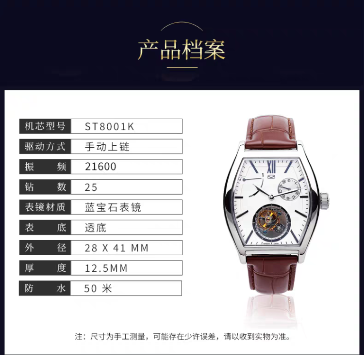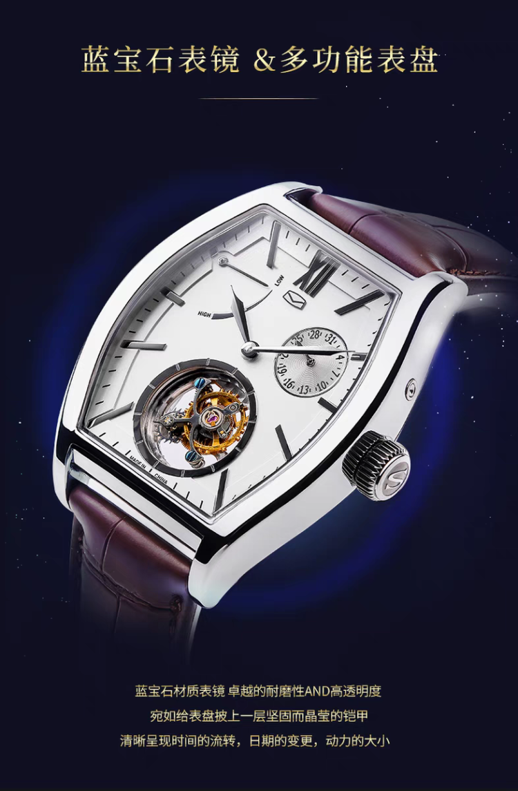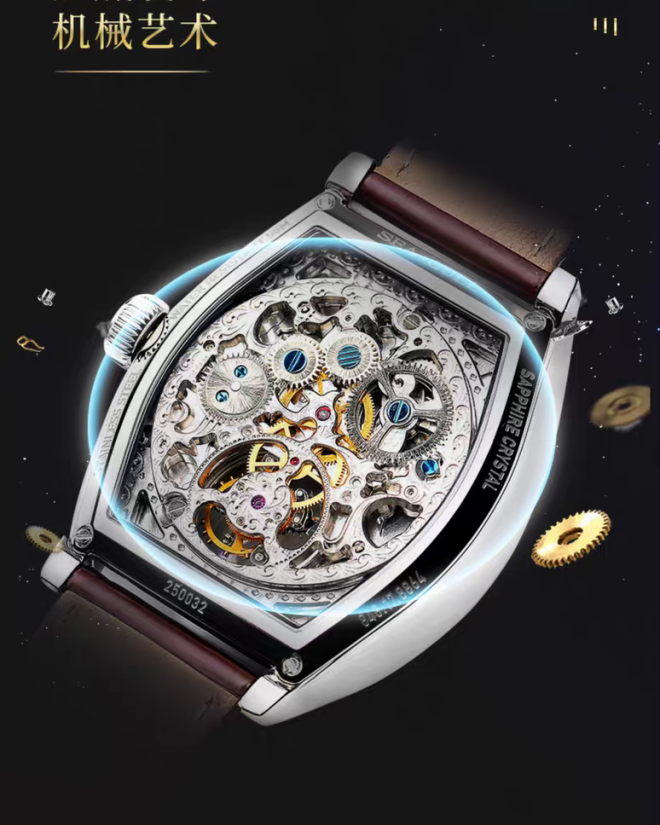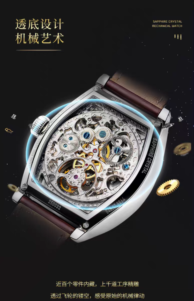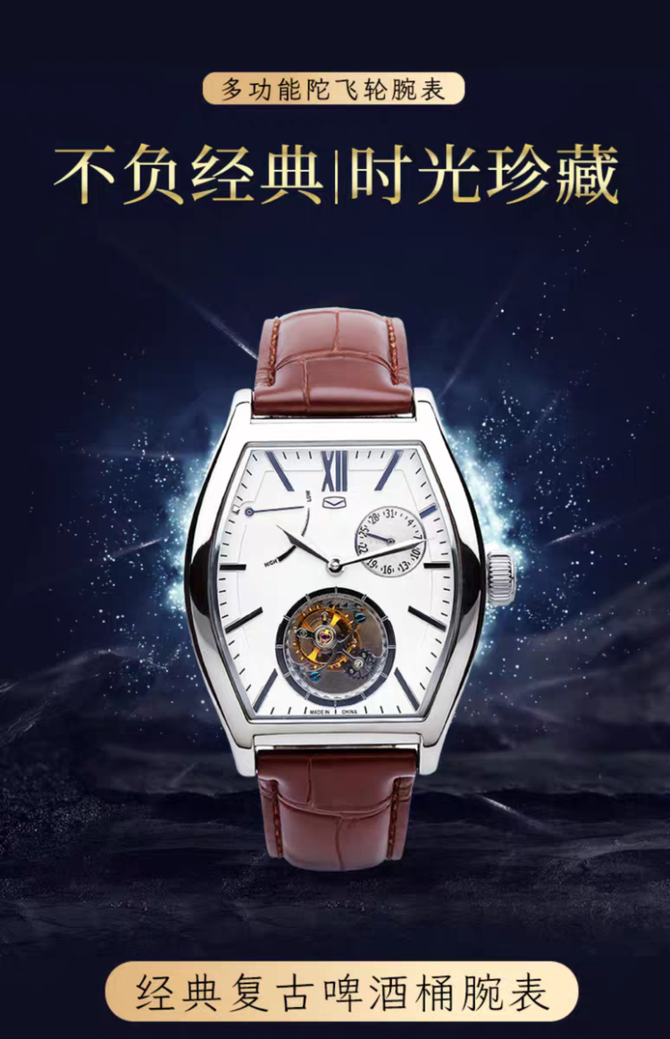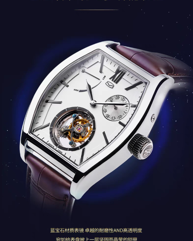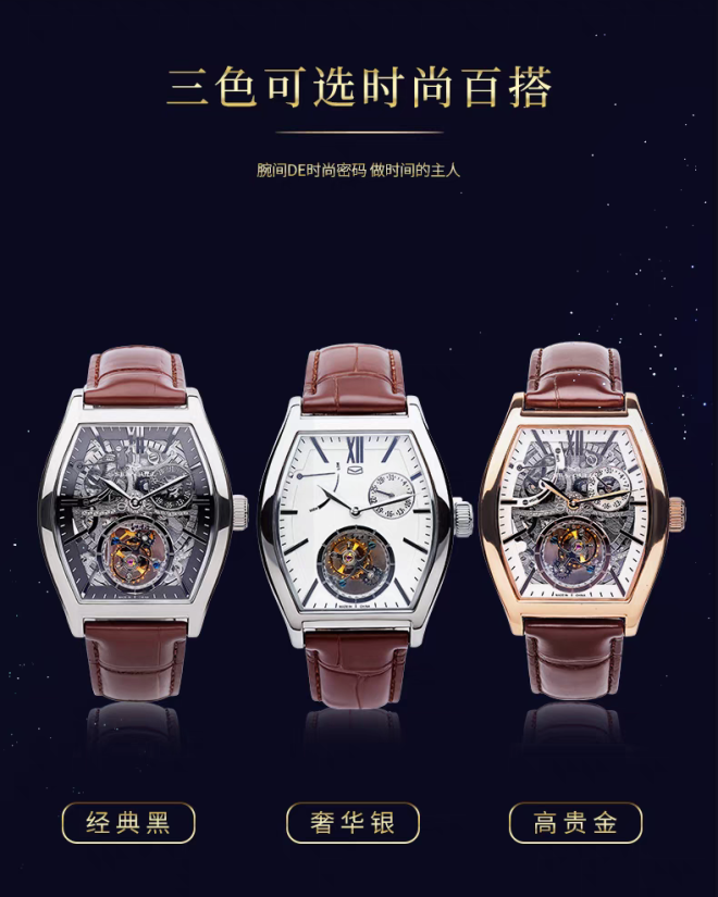 海鸥表镂空陀飞轮酒桶型机械表陀高端男表商务手表高级腕表8863K