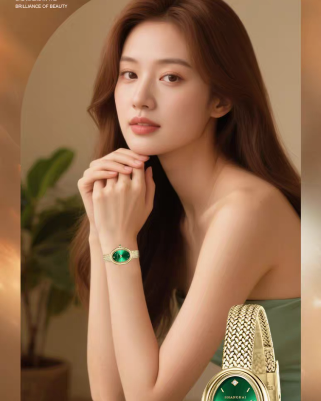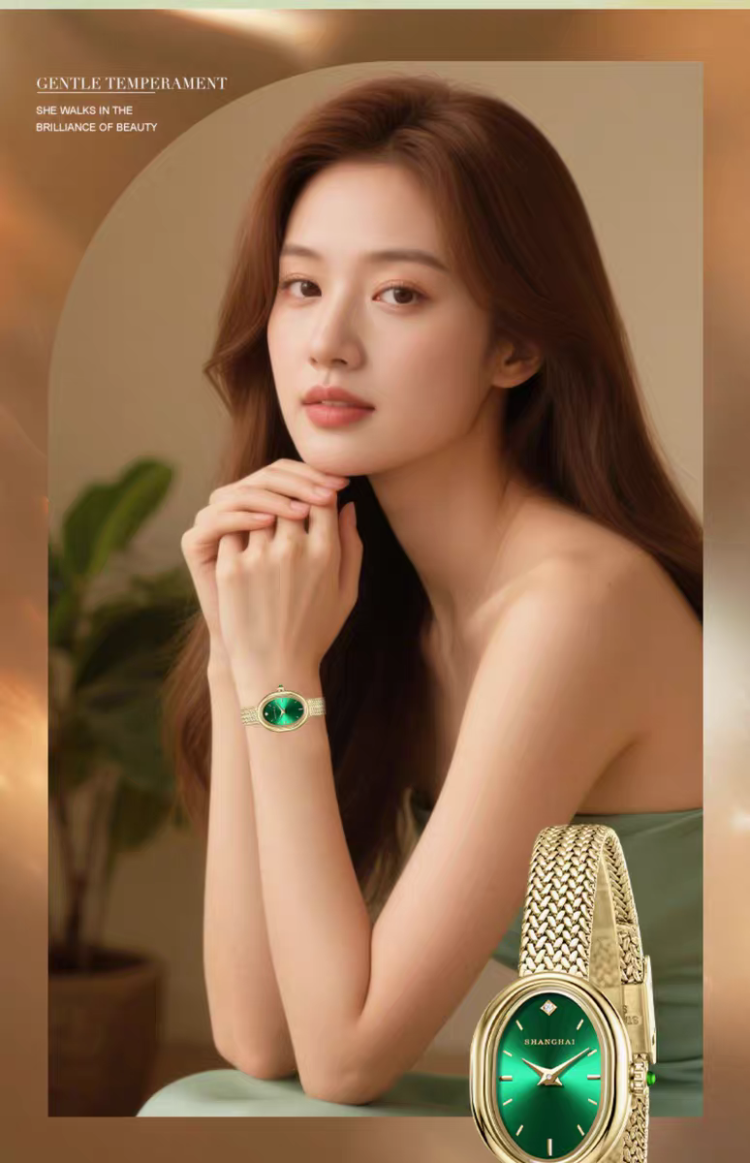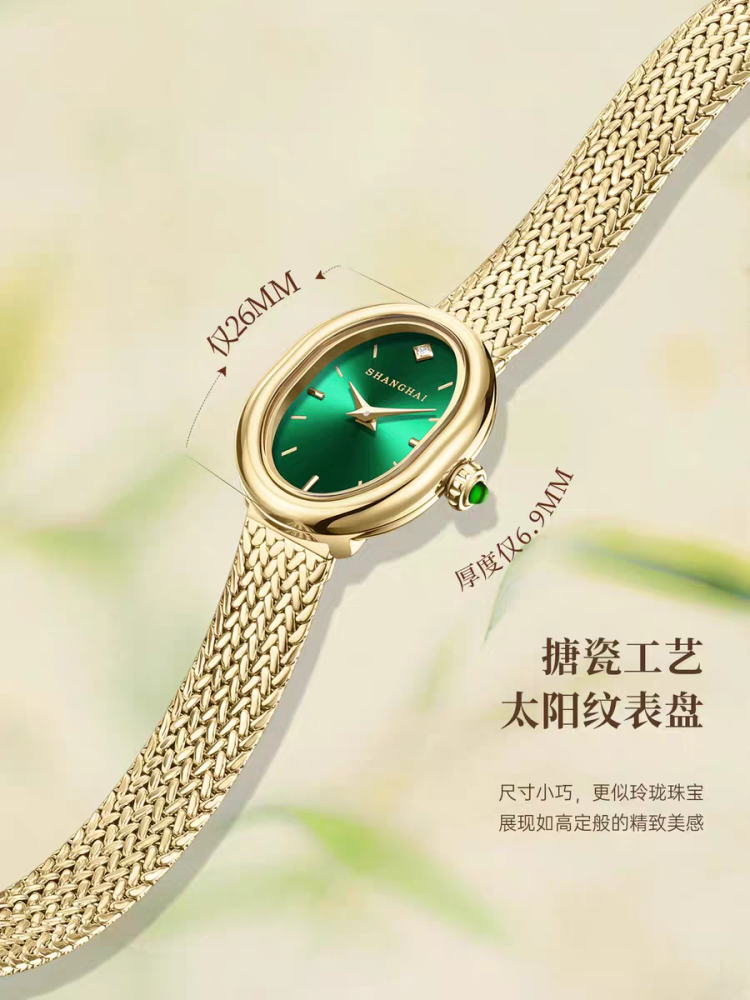 【新品上线】上海手表女表摩登系列华灯小圆满轻奢小金表石英表