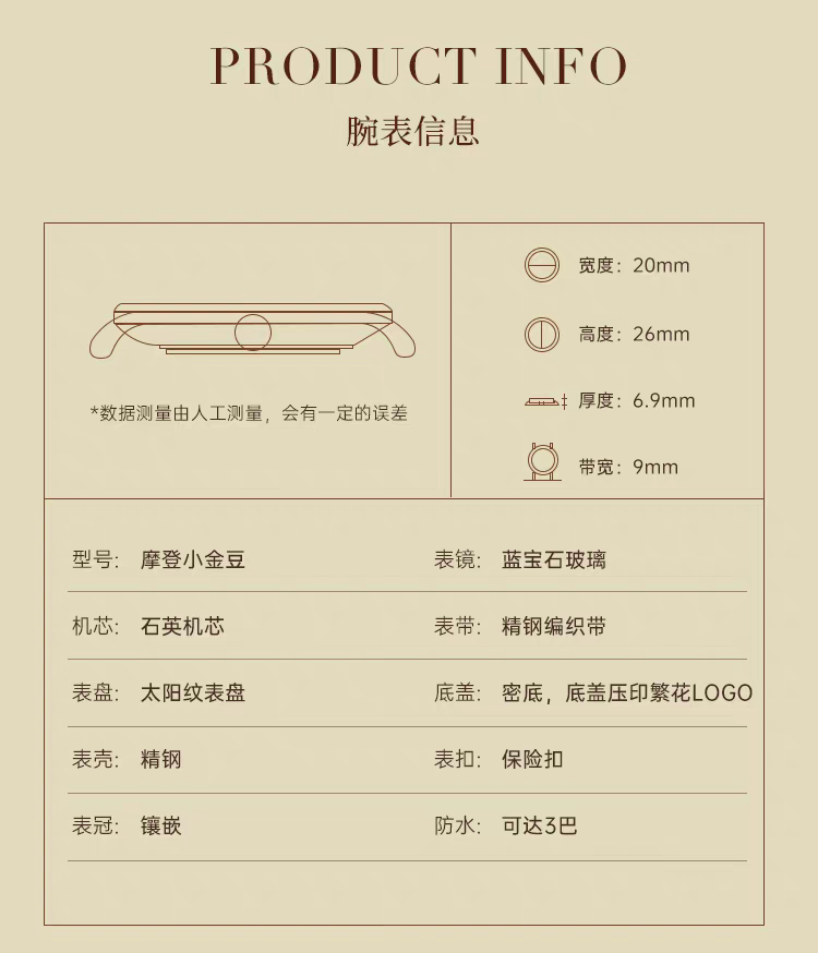 • 表壳材质PVD镀金