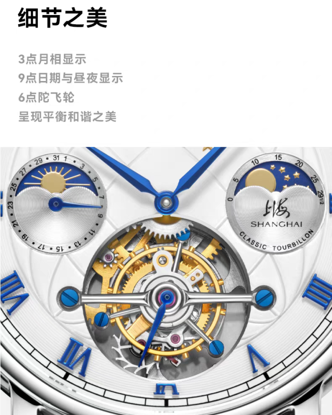 【新品】上海手表男款复兴系列大航海陀飞轮商务机械腕表节日礼物