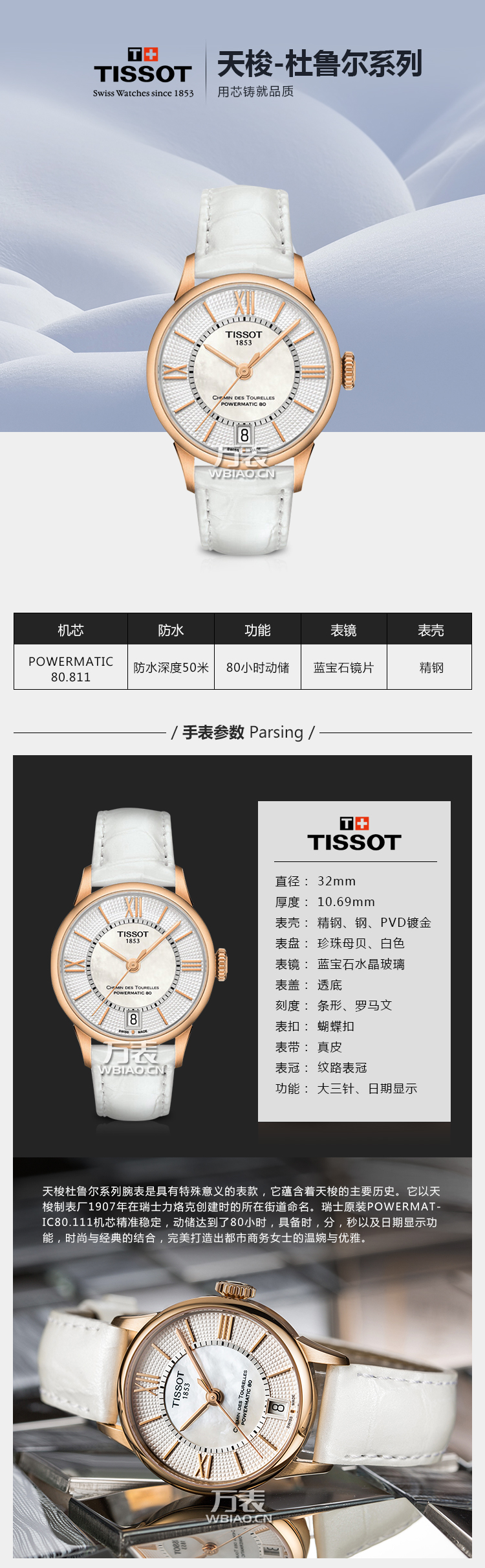 天梭TISSO-杜鲁尔系列 T099.207.36.118.00 自动机械女表 ¥3450