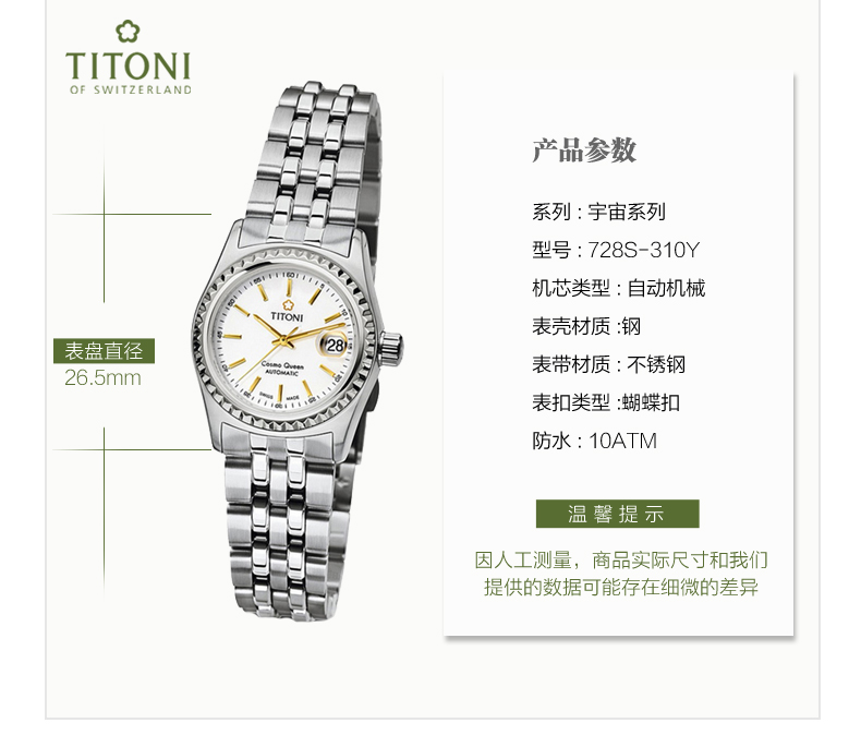梅花Titoni-Cosmo King宇宙系列 728 S-310Y 机械女表 ¥8600
