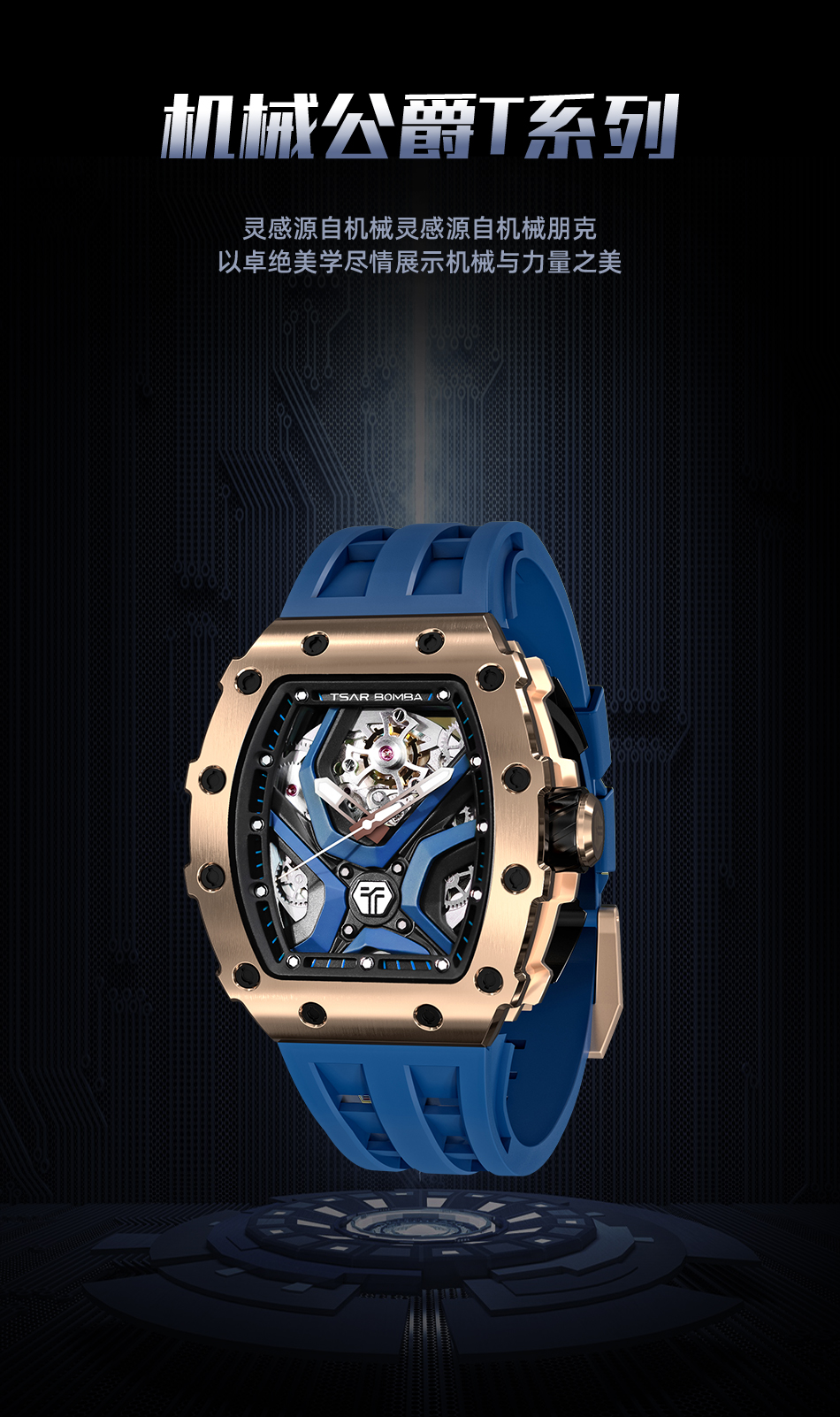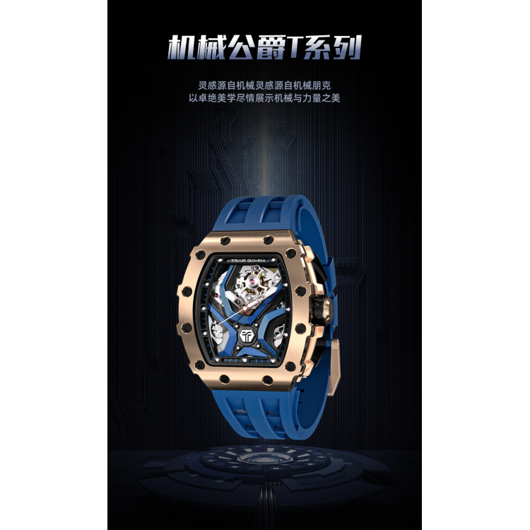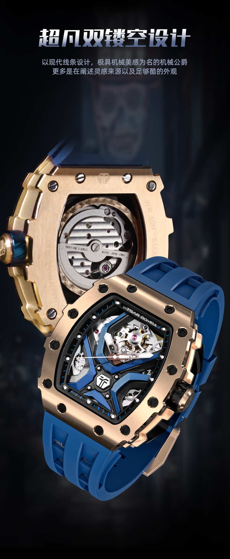 【限时送原装表带】机械公爵-酒桶型双面镂空时尚奢华男士防水 TB8206A-1118206003 自动机械手表 ¥2390