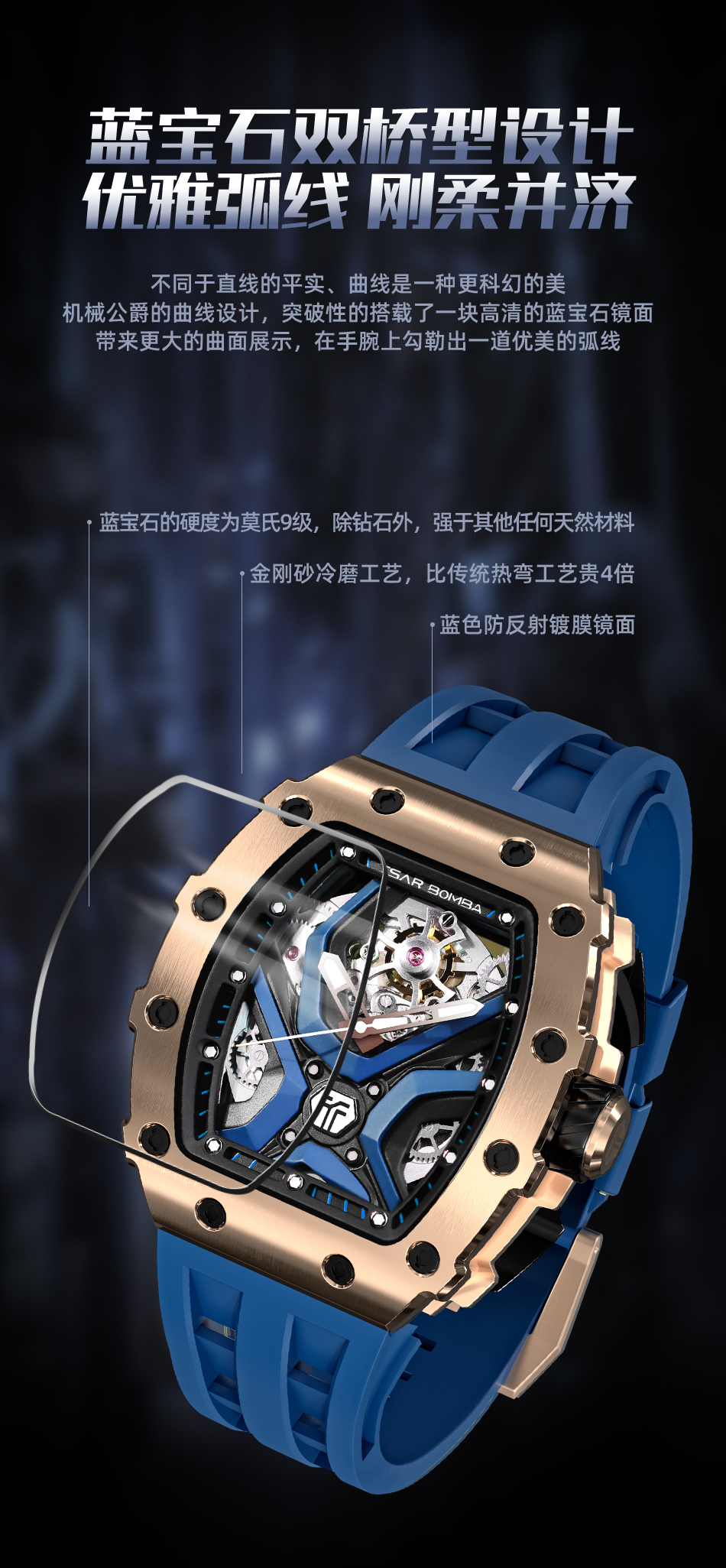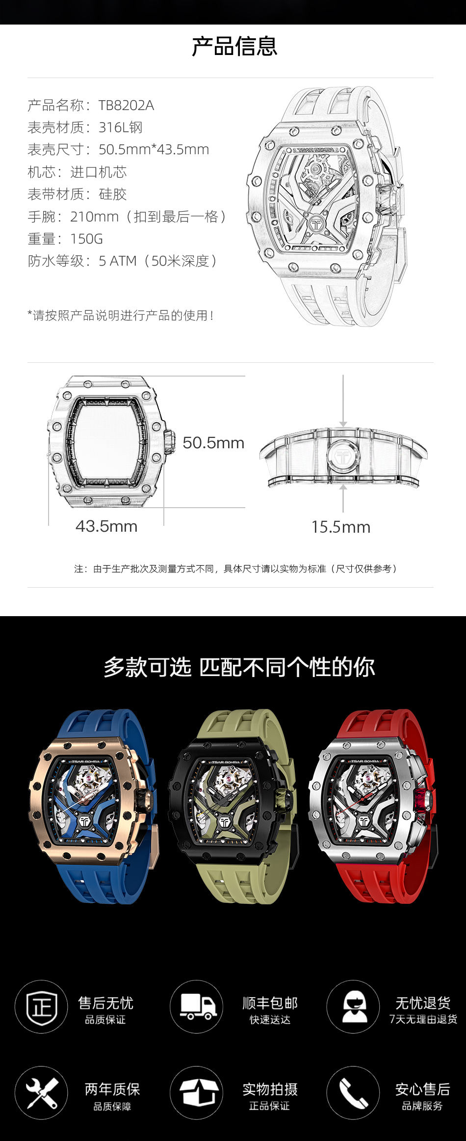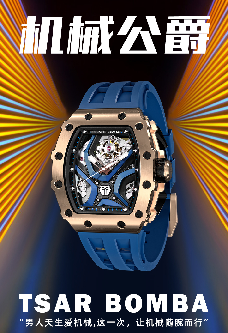 【限时送原装表带】机械公爵-酒桶型双面镂空时尚奢华男士防水 TB8206A-1118206003 自动机械手表 ¥2390