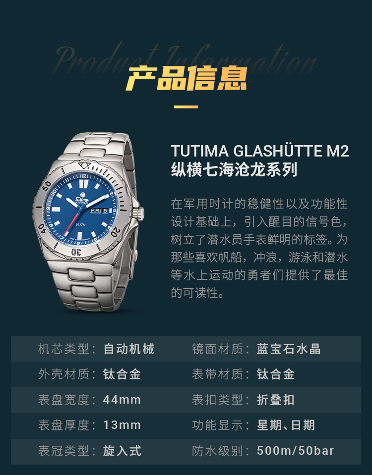 【预售】德国拓天马 TUTIMA-M2运动 Seven Seas纵横七海系列 6151-12 自动机械男表 ¥20300