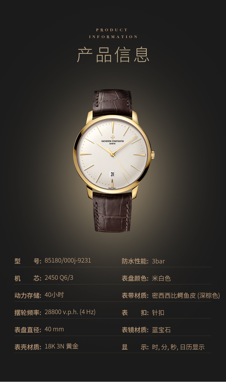 江诗丹顿-Patrimony传承系列 85180/000j-9231 机械男表 ¥265000