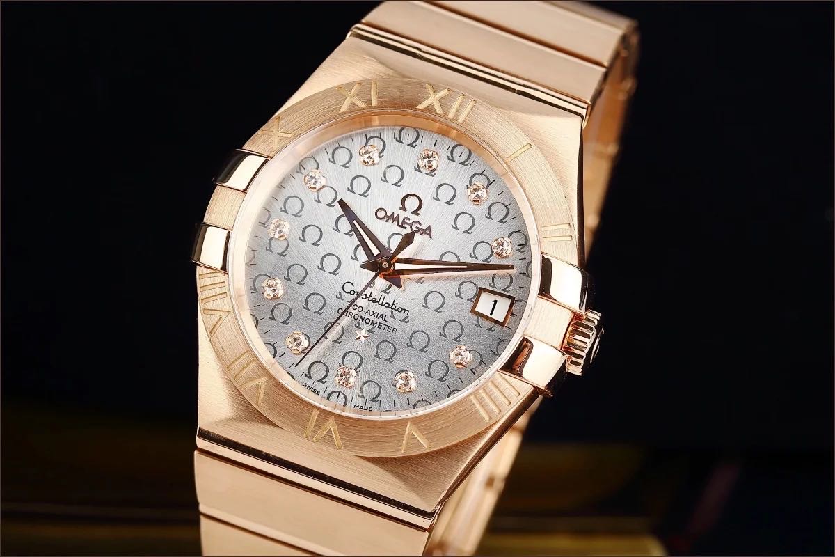 欧米茄,123.50.35.20.52.003,星座系列,原镶钻机械男表,表径35mm, 腕周178mm,单表无附件,店保一年