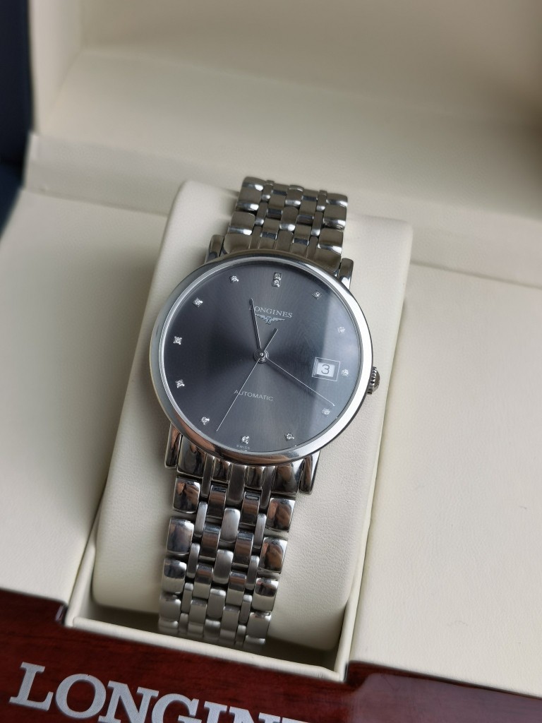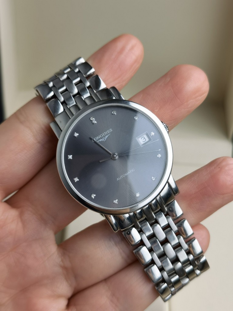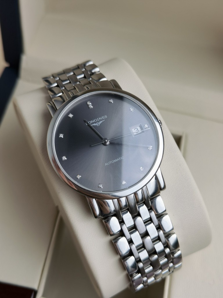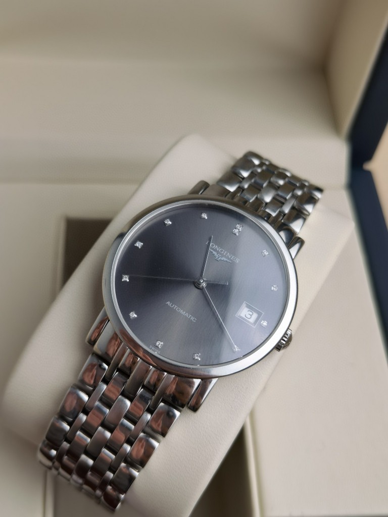 浪琴L4.809.4.78.6博雅系列男士机械腕表,质感灰面带钻,表径35