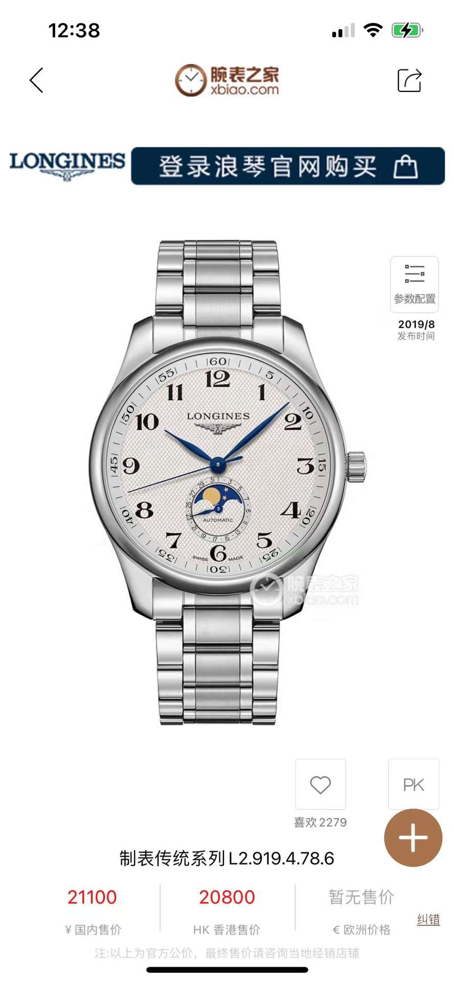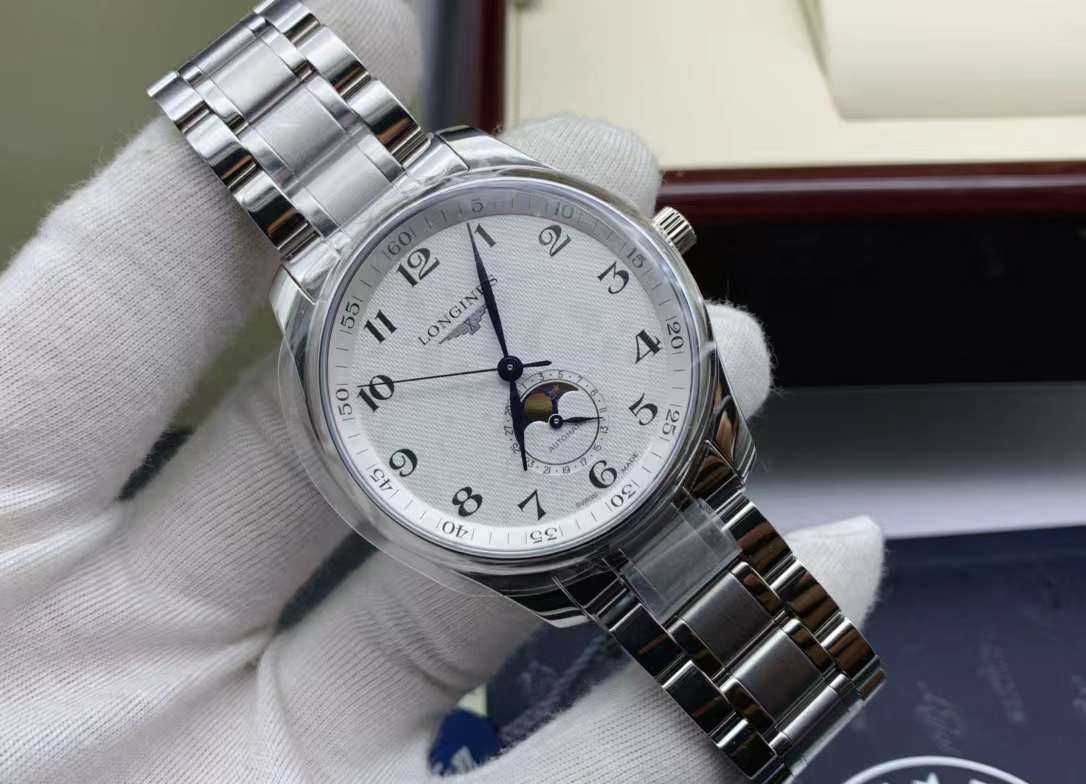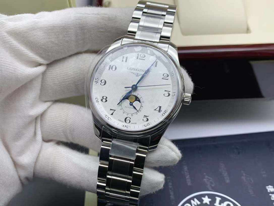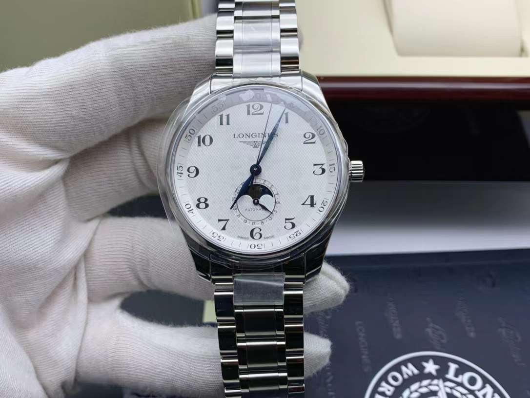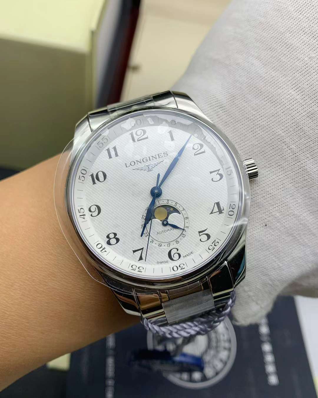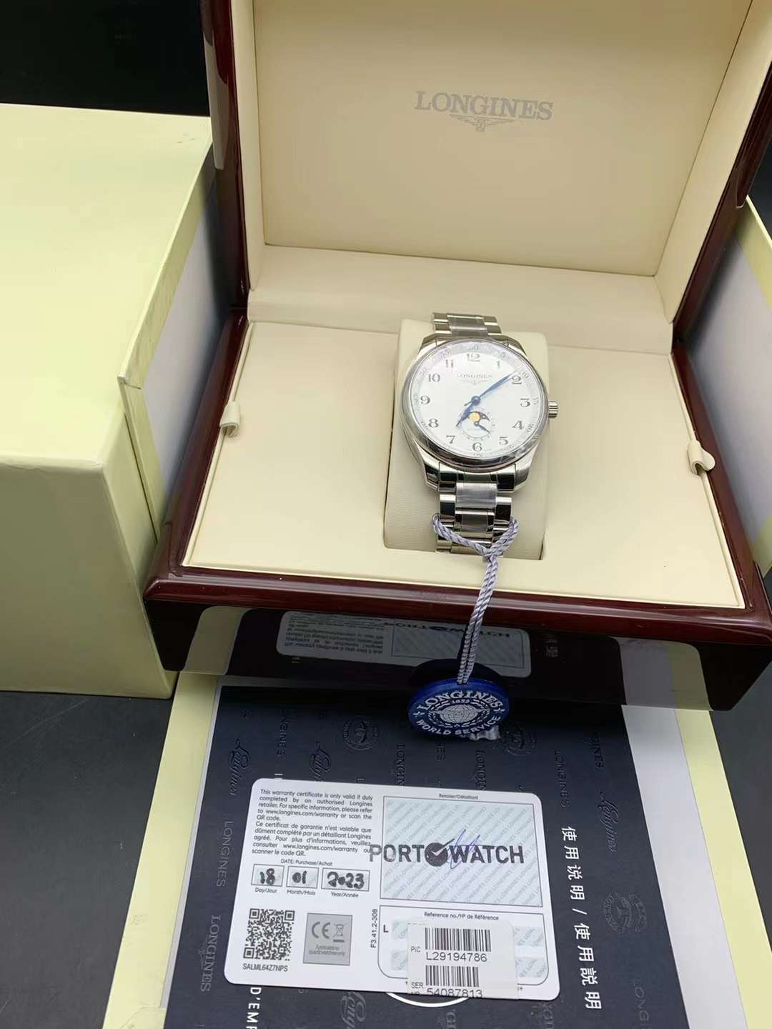 【全未使用品】浪琴名匠系列L2.919.4.78.6男士机械腕表,表径42mm,大盘带月相显示,经典白盘,蓝针大气漂亮,超薄背透机芯,经典通勤表,最新款899.5机芯,2023年1月全套全新未使用品,送礼自带俱佳,所有附件如图所示,公价21100