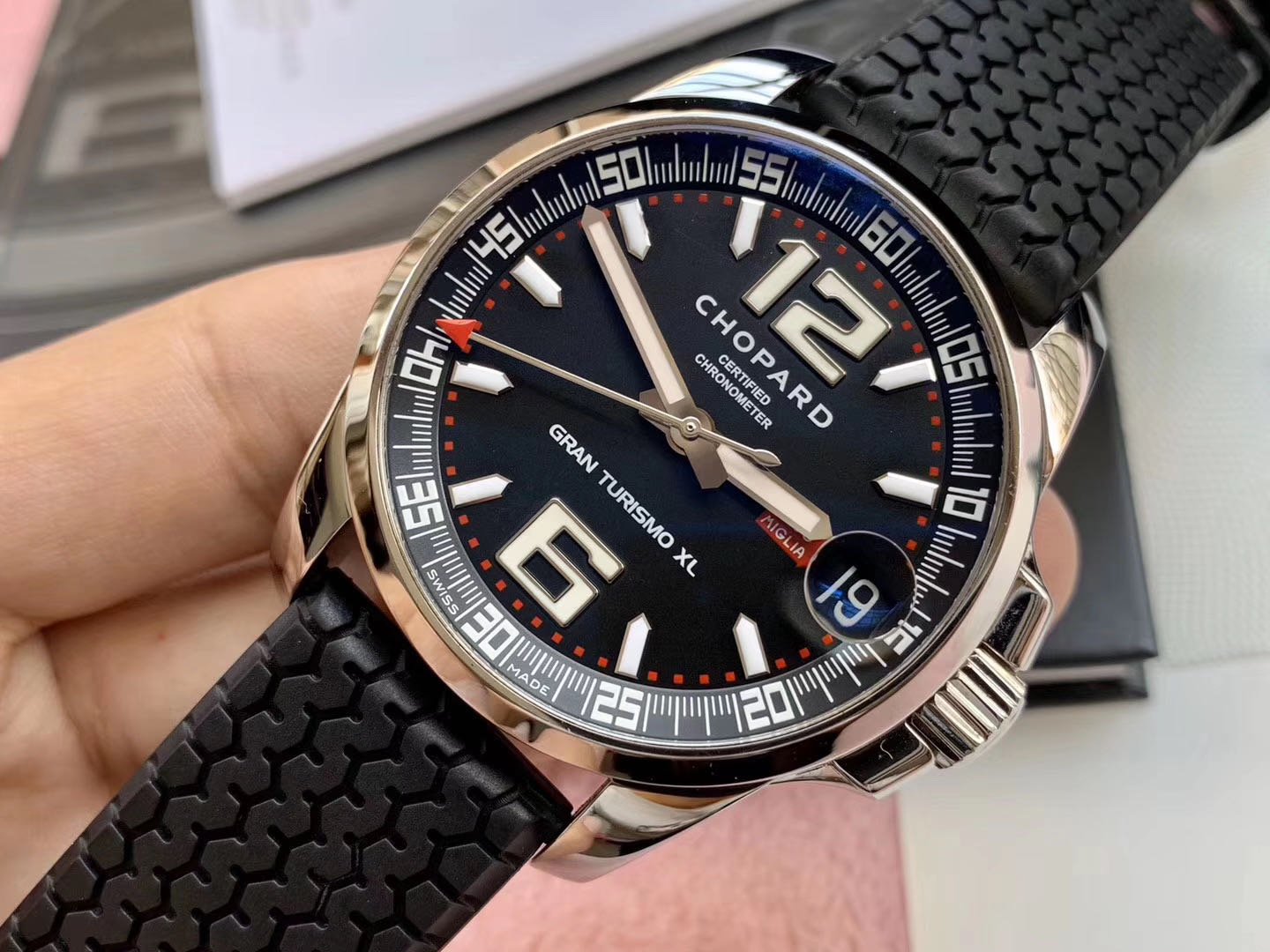 搭载Chopard 01.01-C机芯,表况极佳,喜欢赛车运动的朋友别错过,原价38300
